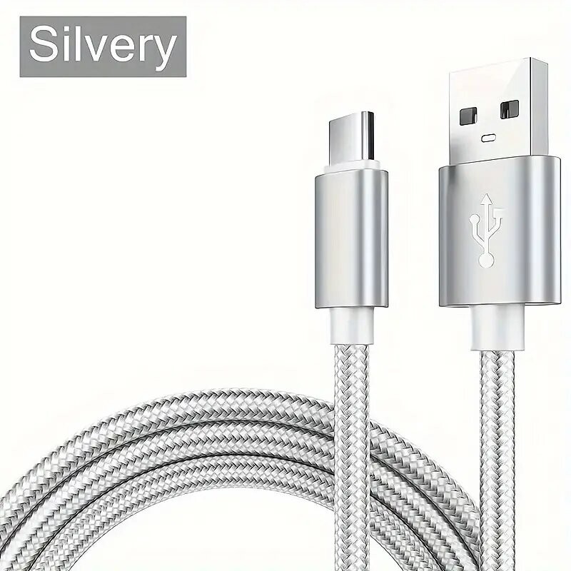 Type-C 編み込み ケーブル タイプ C コード 充電 データ通信 充電器 ナイロン ケース シルバー 銀 銀色