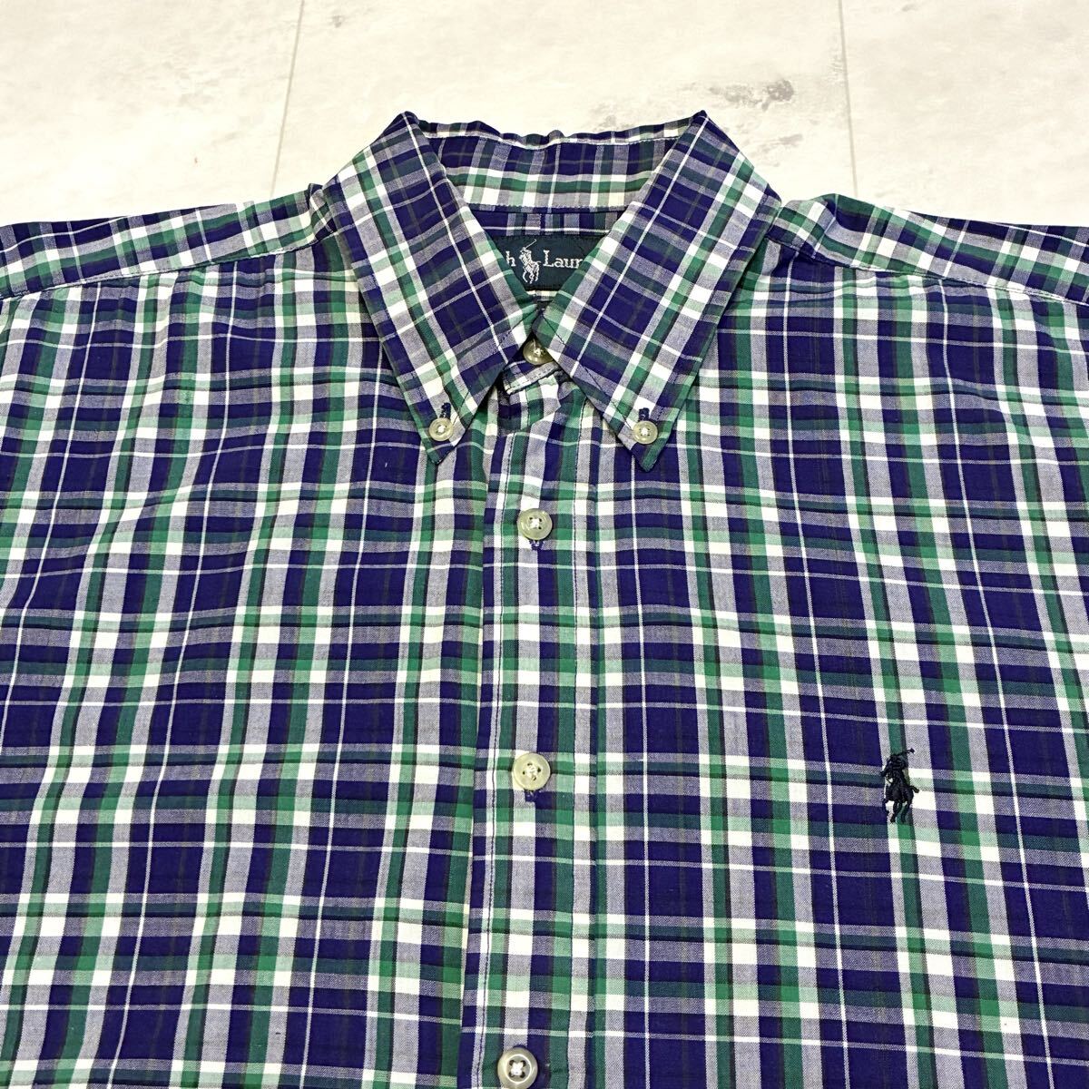 90s 00s Ralph Lauren ラルフローレン ポニー 刺繍 マドラスチェック ビンテージ ボタンダウン 半袖シャツ 收藏