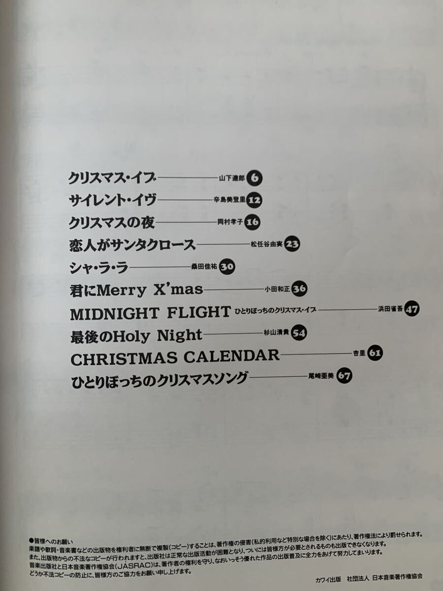 ライトインテリジェンヌ ピアノスコア ニューミュージック JAZZ クリスマス 山下達郎 松任谷由実 桑田佳祐 小田和正 浜田省吾 杉山清貴 杏里 尾崎亜美 辛島美登里 岡村孝子 定価1648円 1992年河合出版発行 ヤケあります、程度は普通ですが新品ではありませんので御理解のある方よろしくお願い致します。