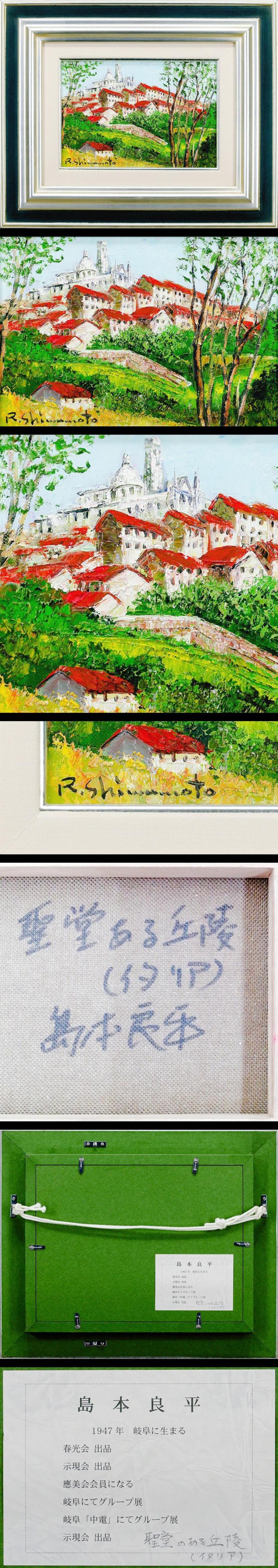 【真作】【WISH】島本良平「聖堂のある丘陵(イタリア)」油彩 SM 聖堂を見上げる麗しき丘陵 〇應美会会員 京美大卒 #25102446 收藏