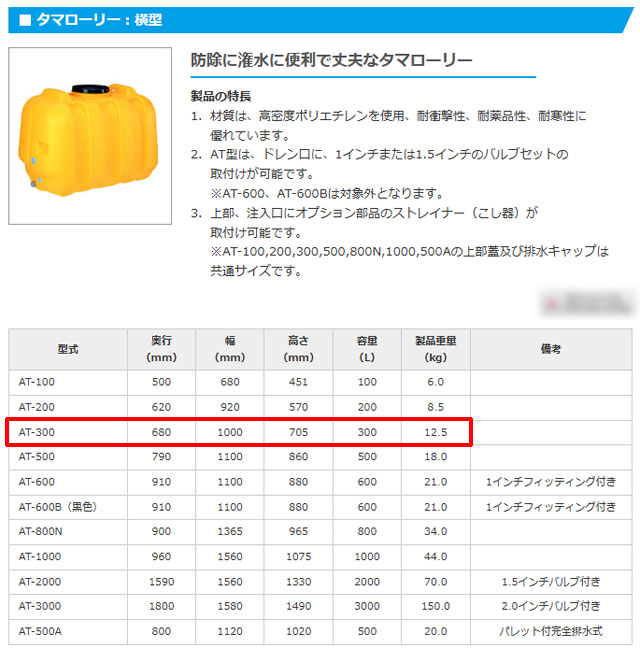 コダマ樹脂工業 ローリータンク タマローリー AT-300 容量300L 高密度ポリエチレン 潅水 灌水 【長野発】 收藏