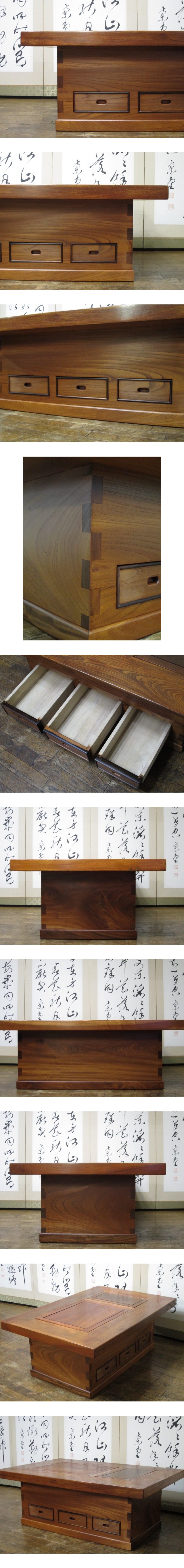 逸品 美しい木目 総欅 ケヤキ 無垢材 天板厚み50mm 中桐 3杯抽斗 民芸 関西火鉢/囲炉裏/座卓/座敷机/テーブル/茶道具/和家具 收藏
