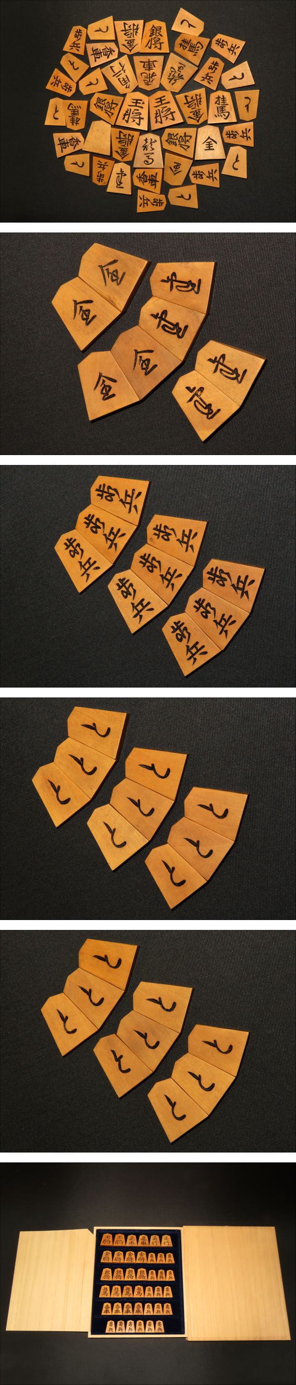 1000円スタート▲竜山作安清島黄楊彫将棋駒▲桐平箱