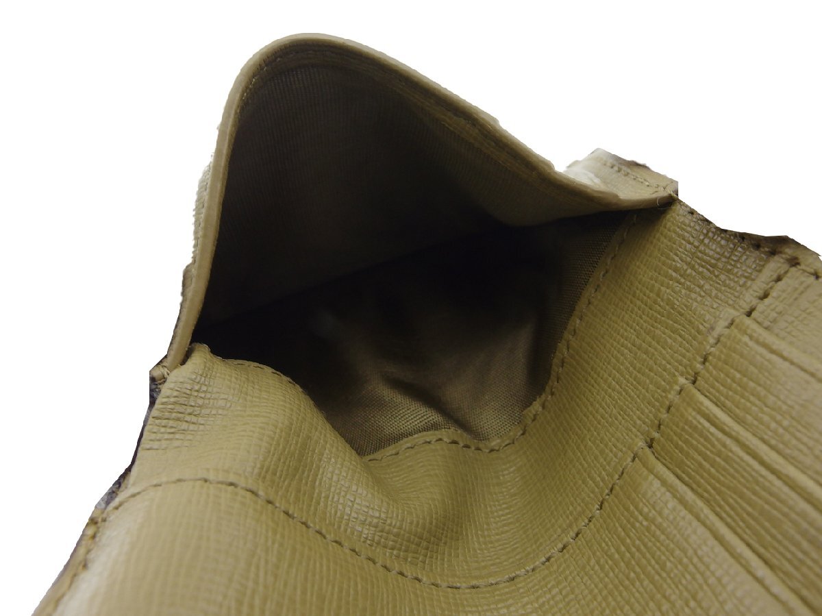 | コンディション | 全体の状態詳細:大きなダメージもなく比較的良いコンディションで、まだまだご使用いただけます。社外リペア跡(右サイドの折り曲げ部分のコバにヒビ割れ補修)あり。外側:レザー(右サイドのコバに補修跡、角スレ)、ロゴプレート(傷、メッキハゲ)、開閉ホック(若干のゆるみ)あり。内側:カード入れ(ボタン跡)あり。その他中古品のため 目立たない 傷 汚れ などの一般的使用感があります。 |