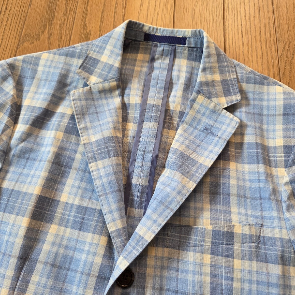 【極美品】 BURBERRY BLACKLABEL バーバリー ブラックレーベル ジャケット テーラードジャケット ブルー ホワイト チェック Lサイズ 收藏