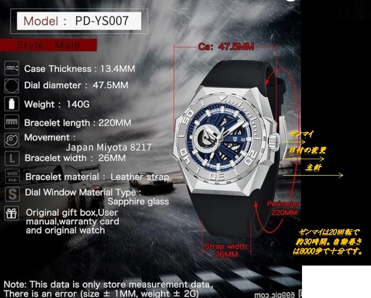 ■その他:パガーニデザインのオリジナルモデルです。ムーブメントは日本製Miyota 8217。GMTは主針連動で個別変更はできません。