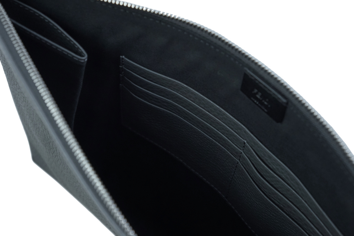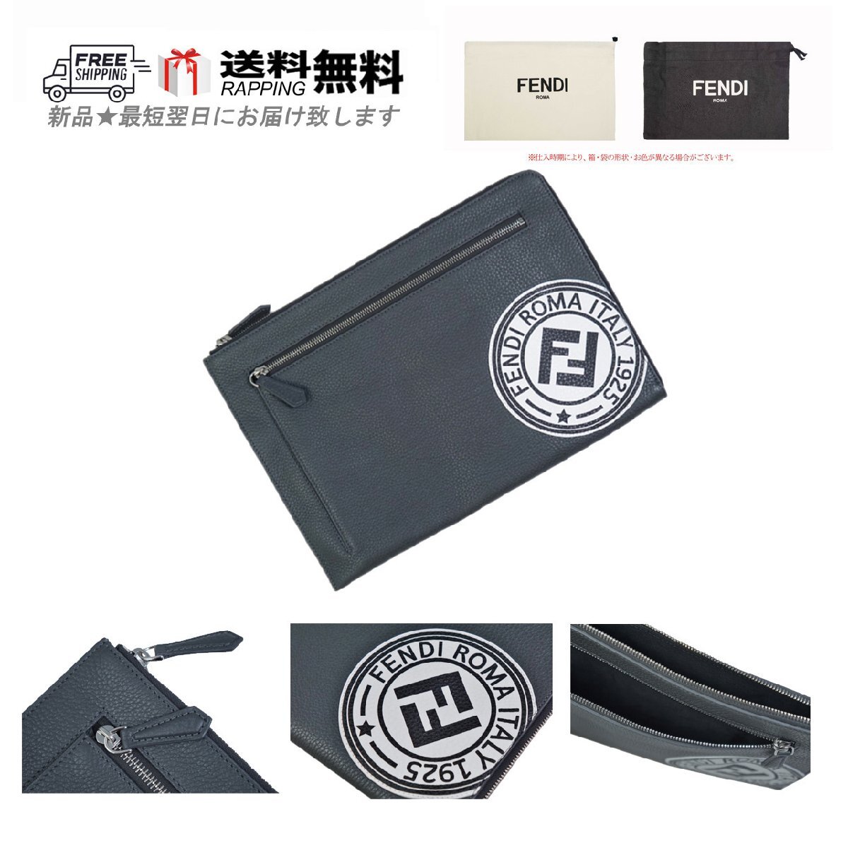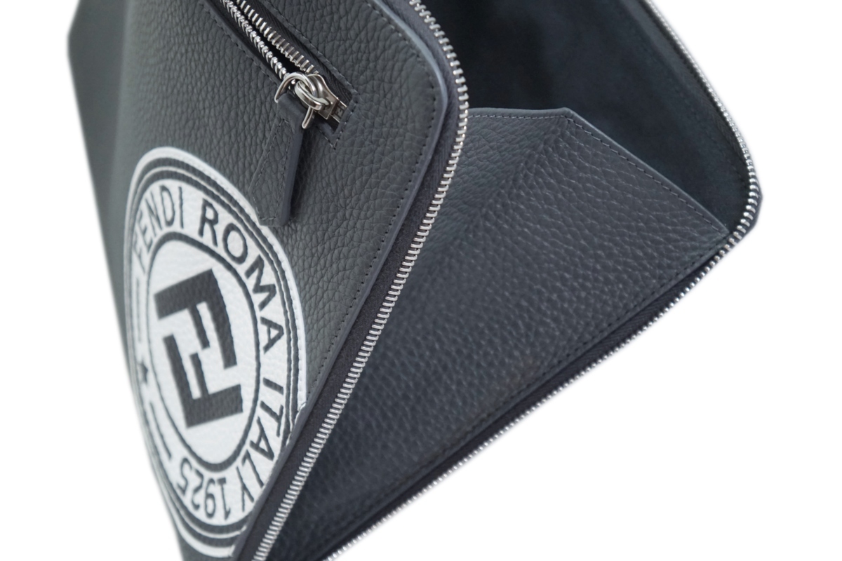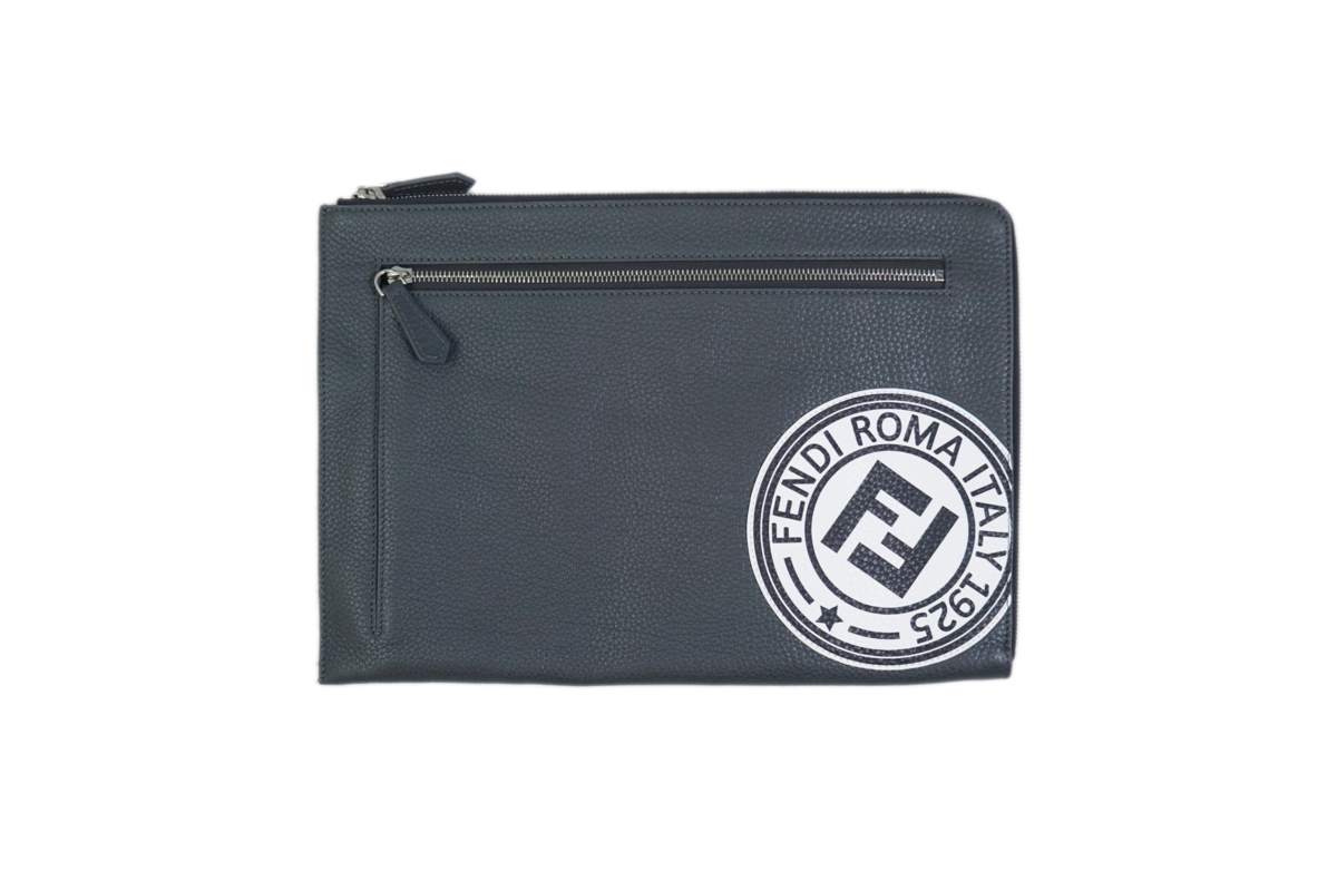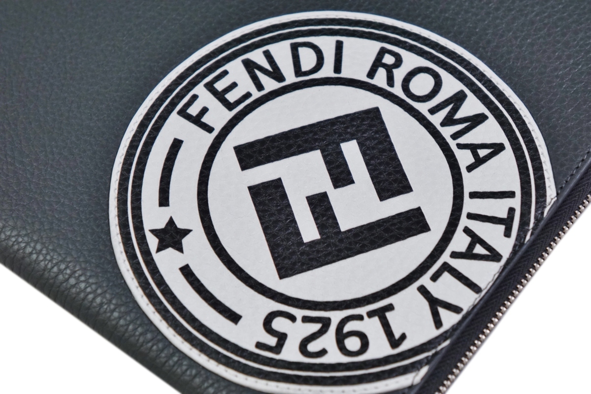 F039.. FENDI フェンディ イタリア製 Fロゴ パッチ装飾 ドキュメントケース ★ ASPHALT + BIANCO + NERO