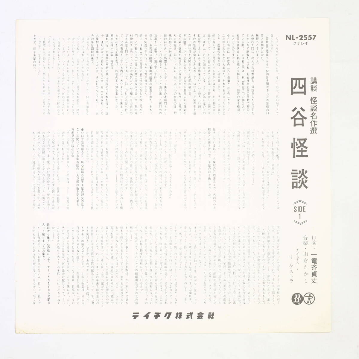 【日LP】一竜斎貞丈/講談 怪談名作選 四谷怪談 牡丹燈記(並良品,Japan Trad,稀少,山倉たかし) 收藏