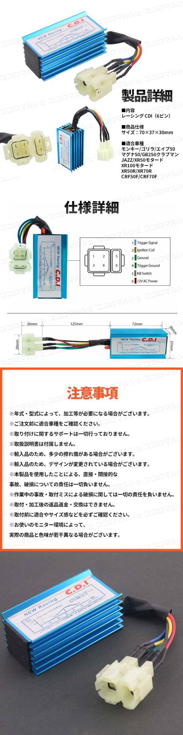 レーシング CDI 6ピン イグナイター ホンダ HONDA モンキー ゴリラ エイプ50 GB250クラブマン マグナ50 JAZZ XR50R XR70R CRF50F CRF70F 收藏