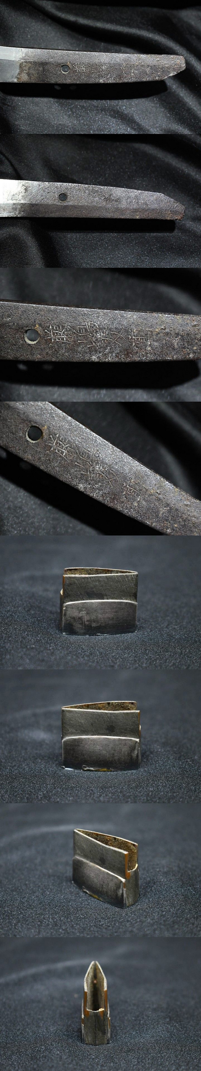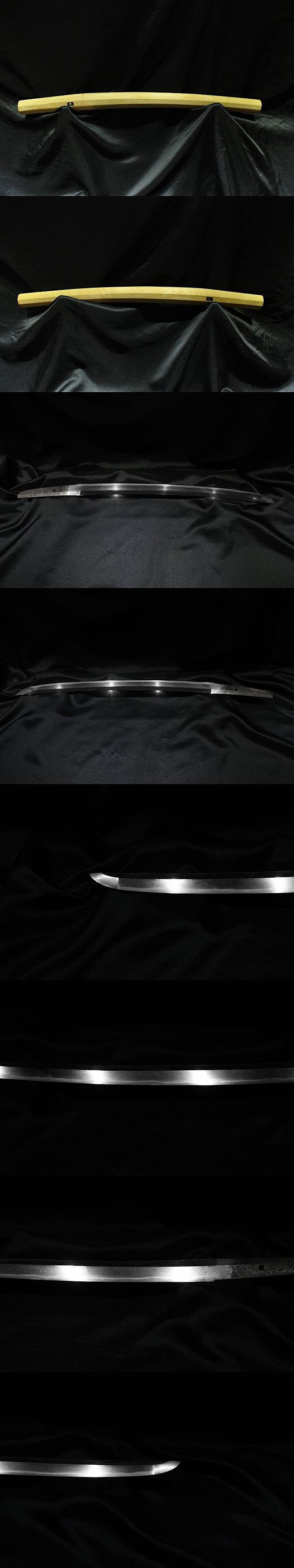 表【藤島友重】 裏【-】 種別:脇差 サイズ:長さ43.5cm 反り: 1.0cm 目くぎ穴 1個 元幅:約 2.745cm 元重:約 0.687cm 先幅:約 1.844cm 先重:約 0.564cm 刀身重量:約 418.6g(ハバキ・柄をとった状態) ハバキ重量:約 19g 鞘全長:約 65.9cm |