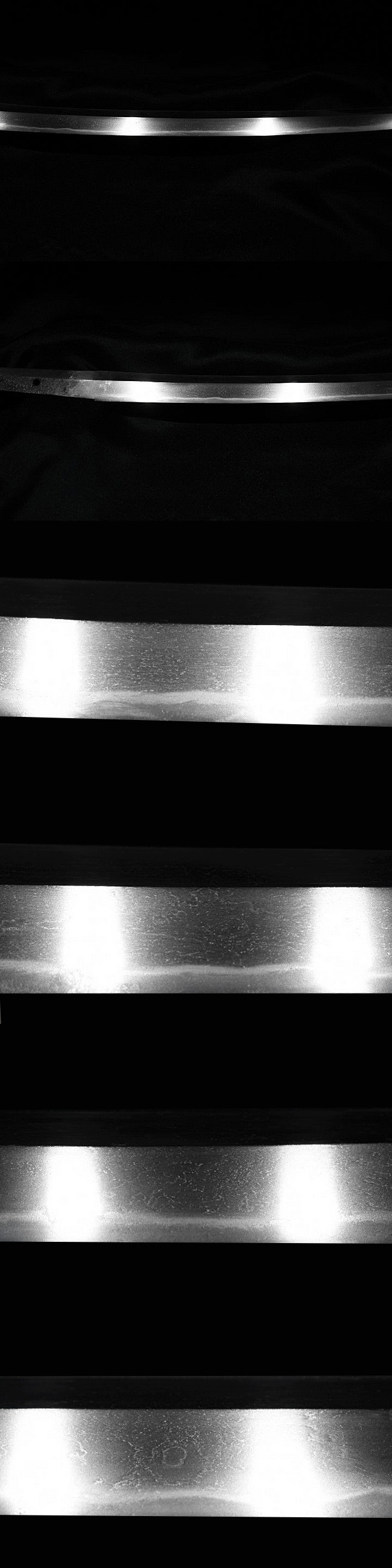 説明:古い蔵に保管されていた脇差です。銘・藤島友重で、鍛え・刃紋ともに見事な出来を示す一振りです。
