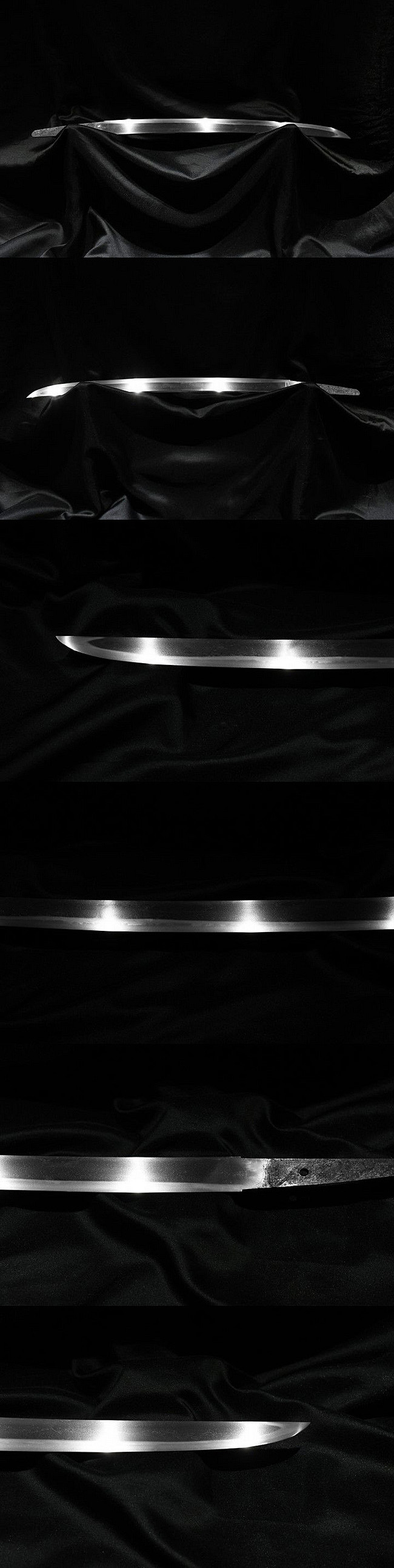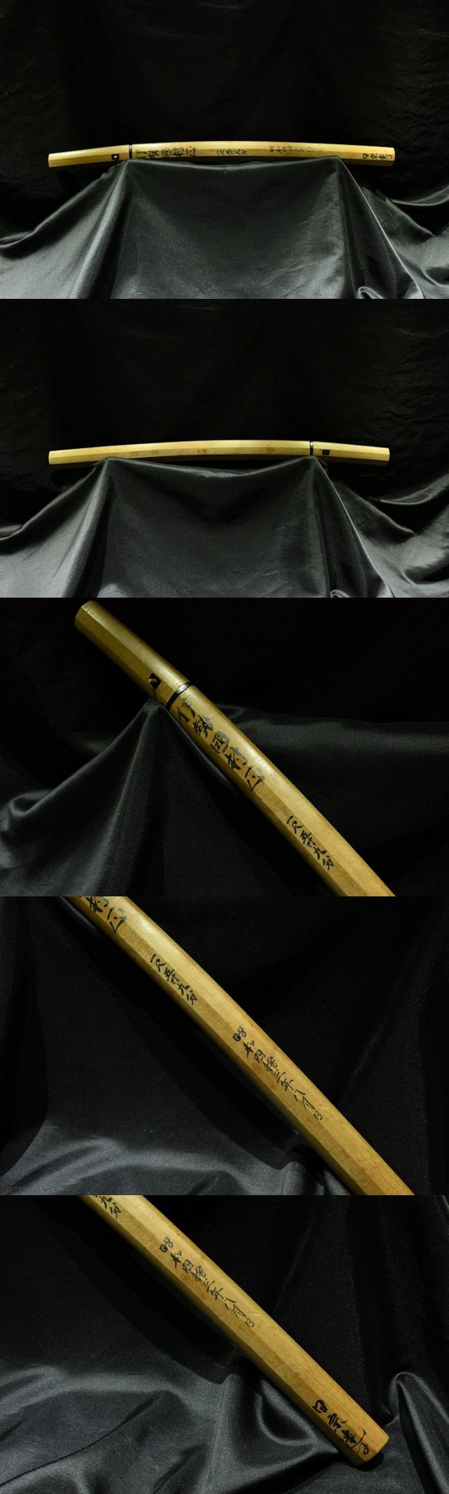 表【-】 裏【-】 種別:脇差 サイズ:長さ 一尺五寸九分(約48.2cm) 反り: 0.3cm 目くぎ穴 1個 元幅:約 2.980cm 元重:約 0.696cm 先幅:約 2.336cm 先重:約 0.566cm 刀身重量:約 430g(ハバキ・柄をとった状態) ハバキ重量:約 20g 鞘全長:約 69cm |