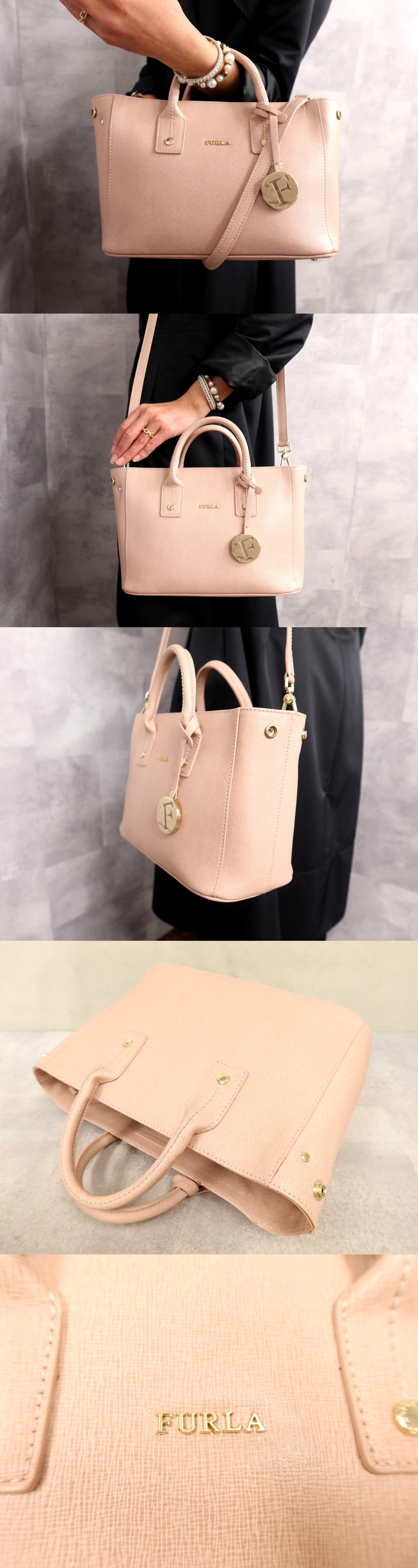 ●超美品●新品同様●FURLA フルラ●リンダ●ロゴ金具●カーフ レザー 本革●2way ハンド バッグ●ライトピンク●ゴールド金具●Js62247 收藏