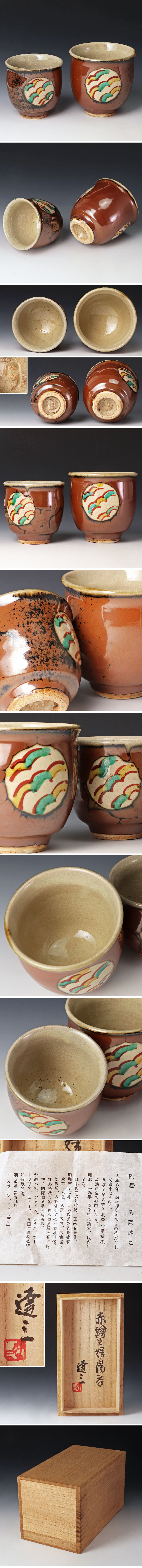 | 【古美味】人間国宝 島岡達三 赤絵夫婦湯呑 茶道具 保証品 |