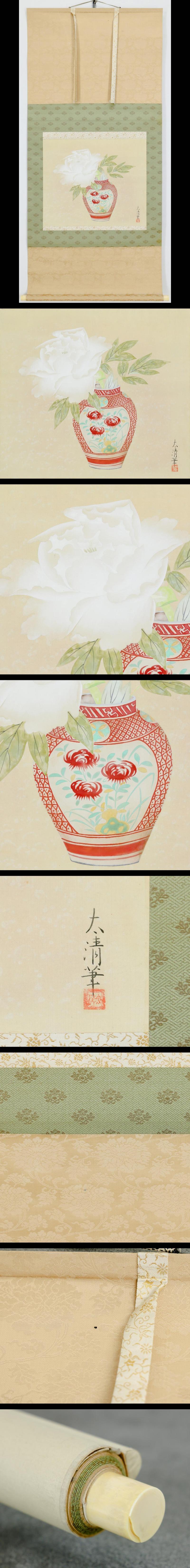 【真作】【WISH】佐藤太清「富貴花」日本画 掛軸 絹本 共箱 ◆華やぐ赤壺に清廉な白牡丹の雅 〇文化勲章 文化功労者 #25100035 收藏