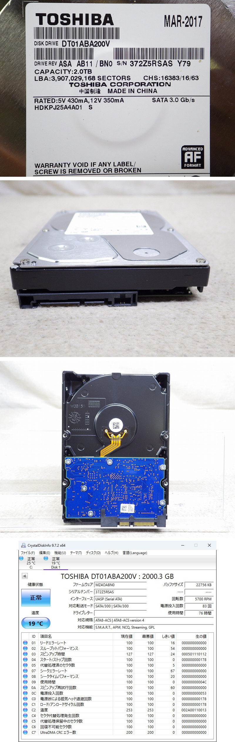 Kネま2260 東芝/TOSHIBA 3.5インチ SATA 内蔵HDD 2TB DT01ABA200V パソコン周辺機器 PCパーツ ハードディスク 收藏