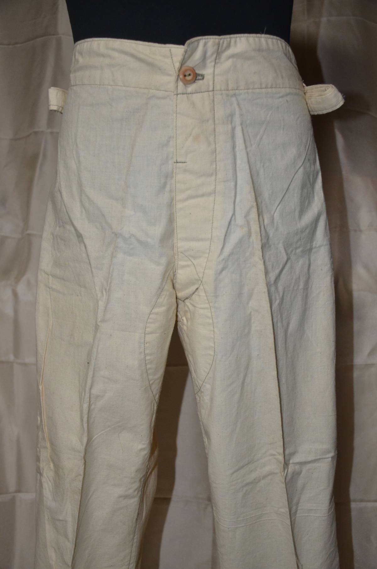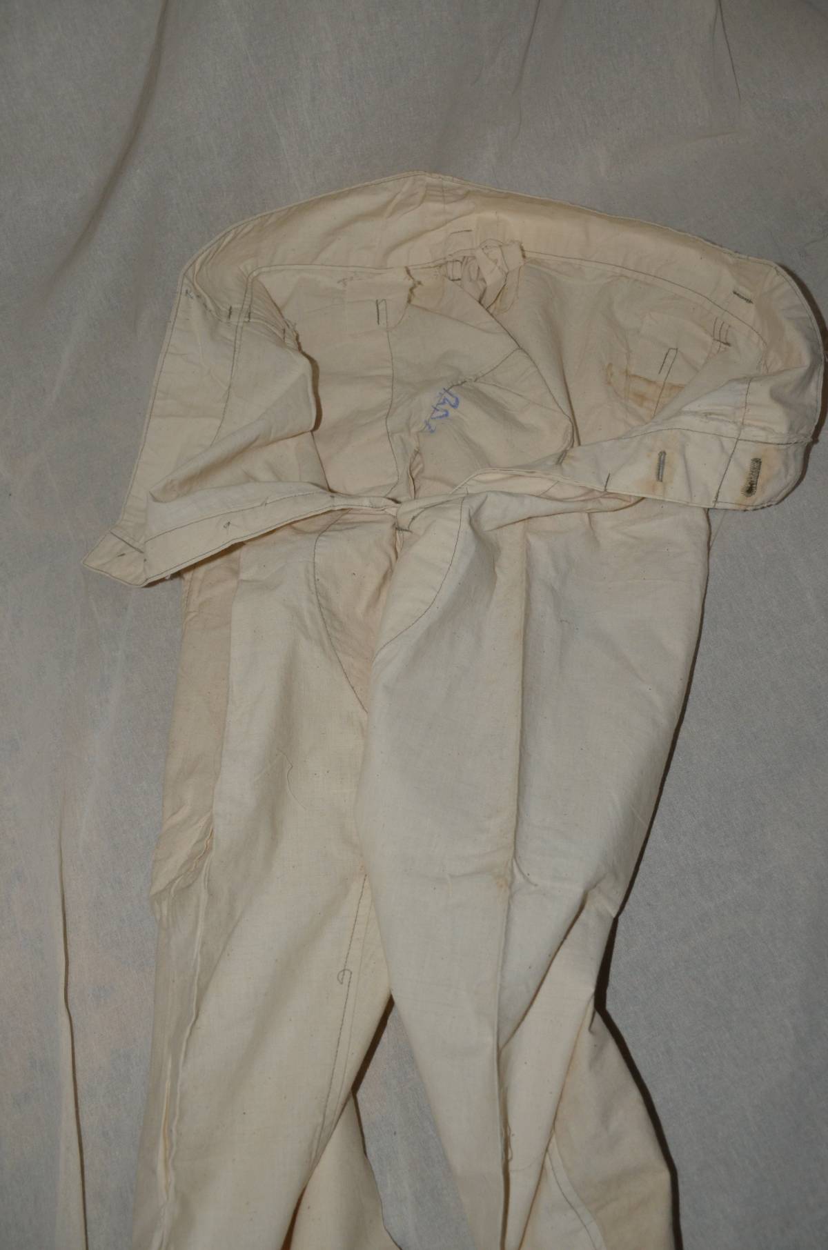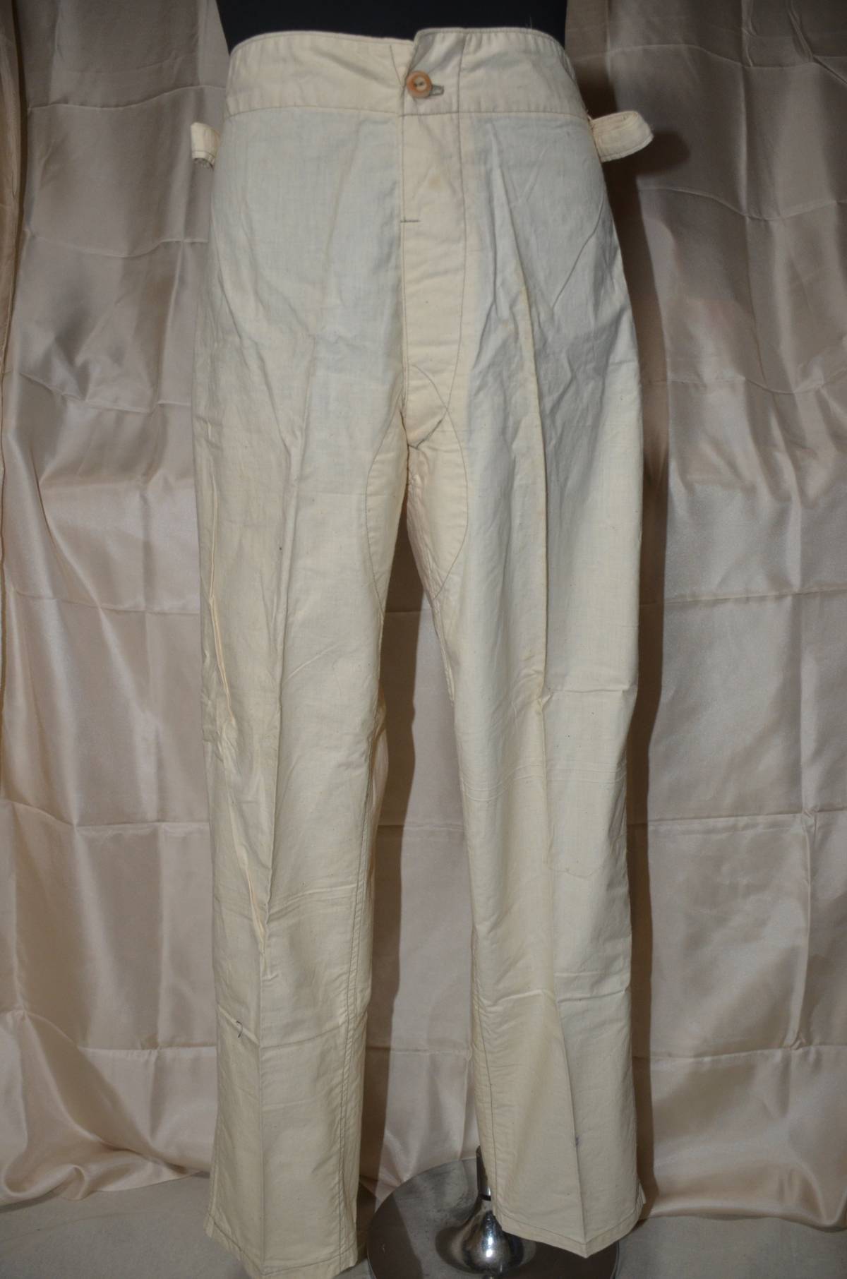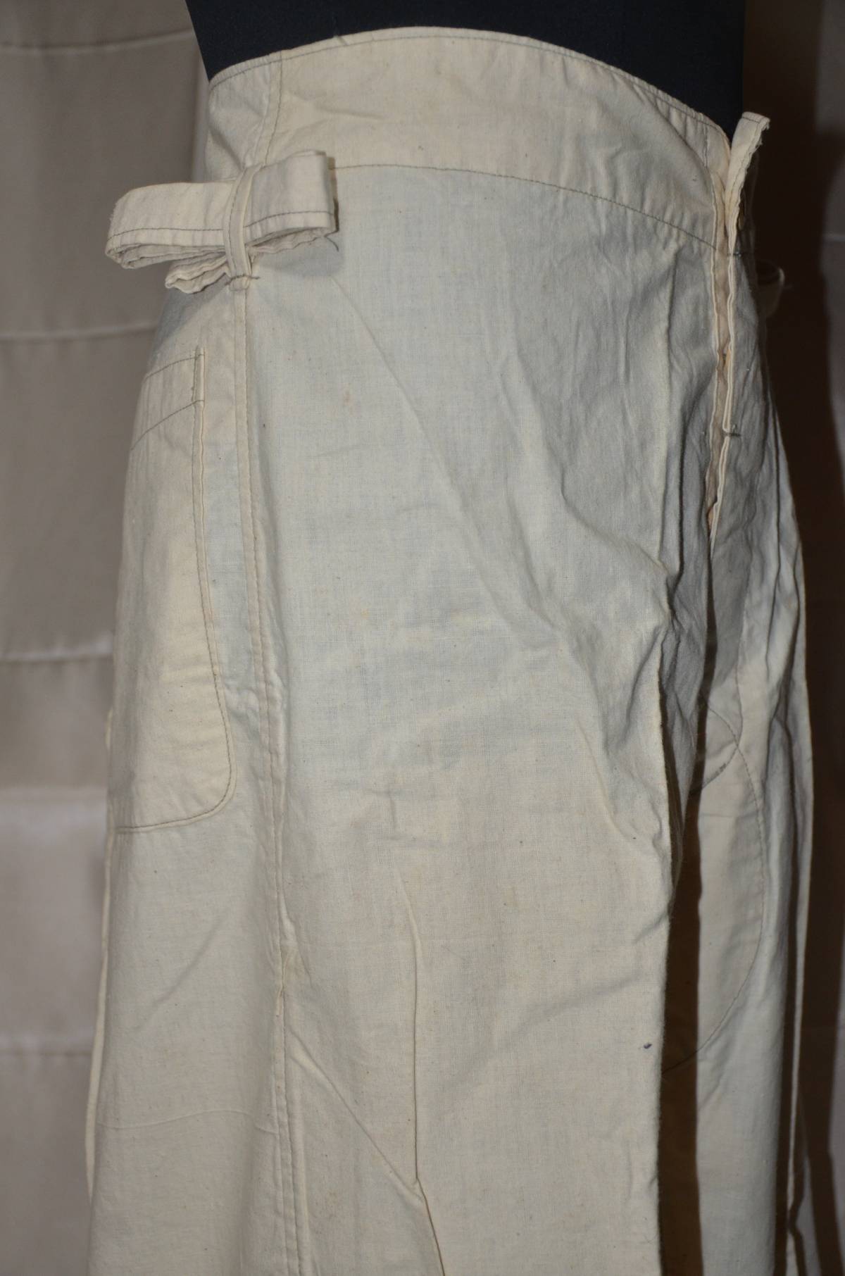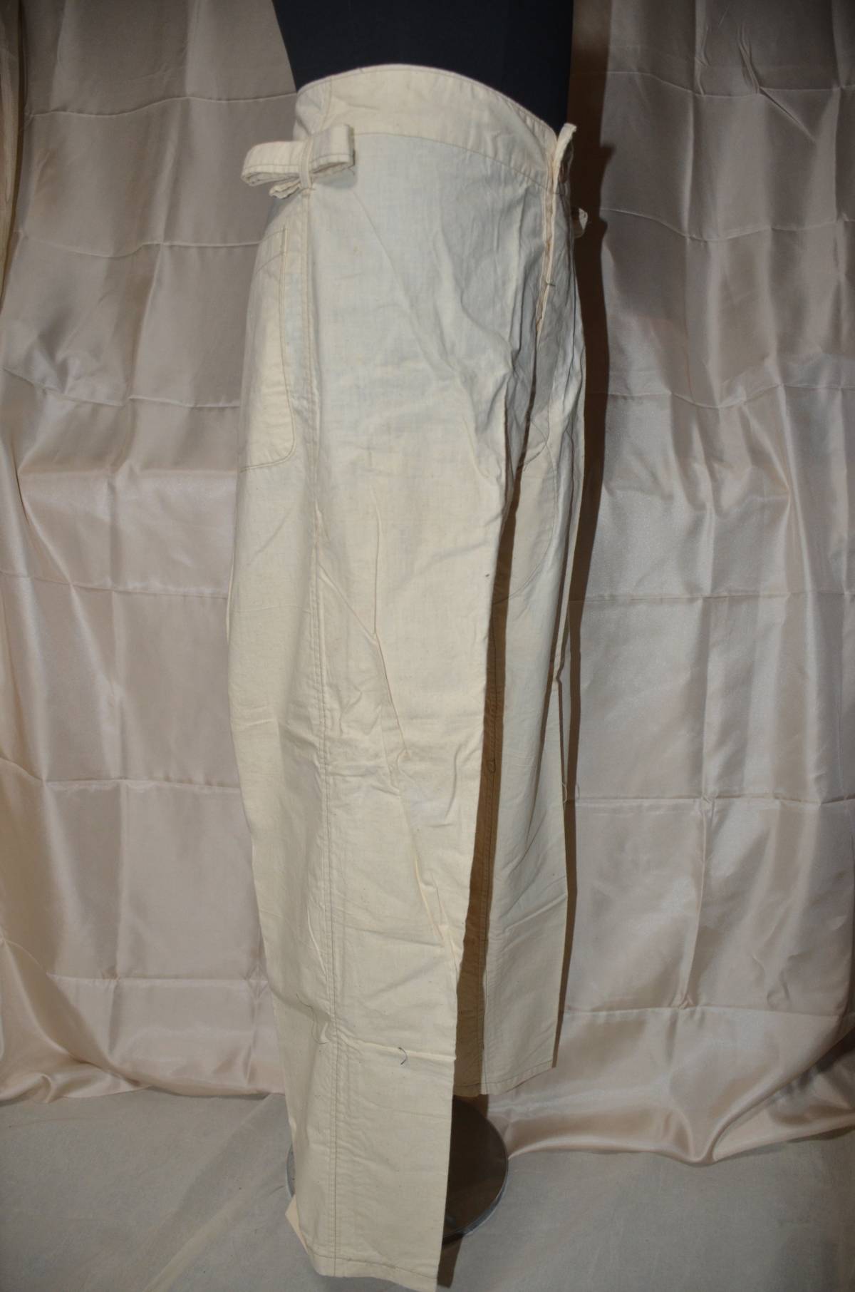 やや薄手の白綿地の袴です。腰紐から陸軍の物と思われますが、検定印がありせん。私物の作業袴ではないかと思われます。サイズは、ウエスト82センチ、股下70センチです。本文下の追加写真もご覧ください。ヤマト運輸宅急便で、全国一律700円でお送りさせていただきます。