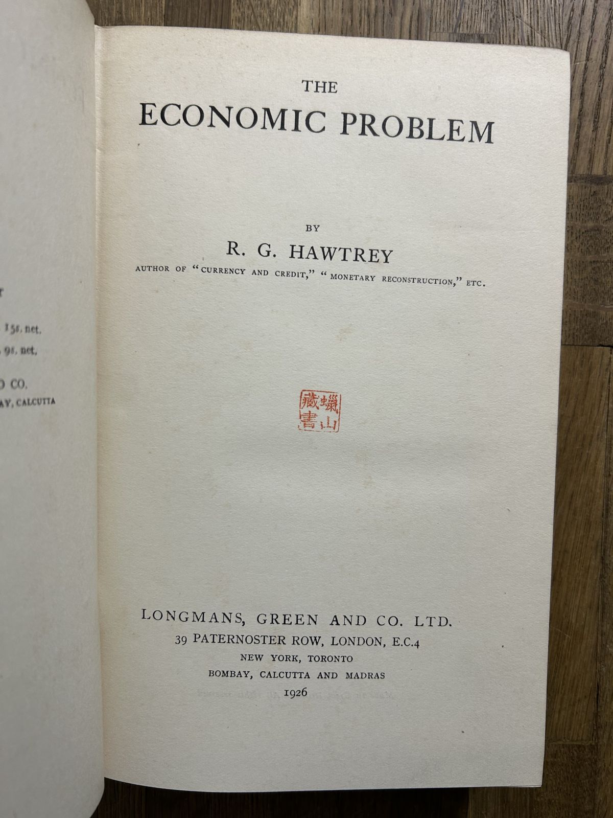 1926初版 ホートレー R. G. Hawtrey, The Economic Problem 英文洋書古書 收藏