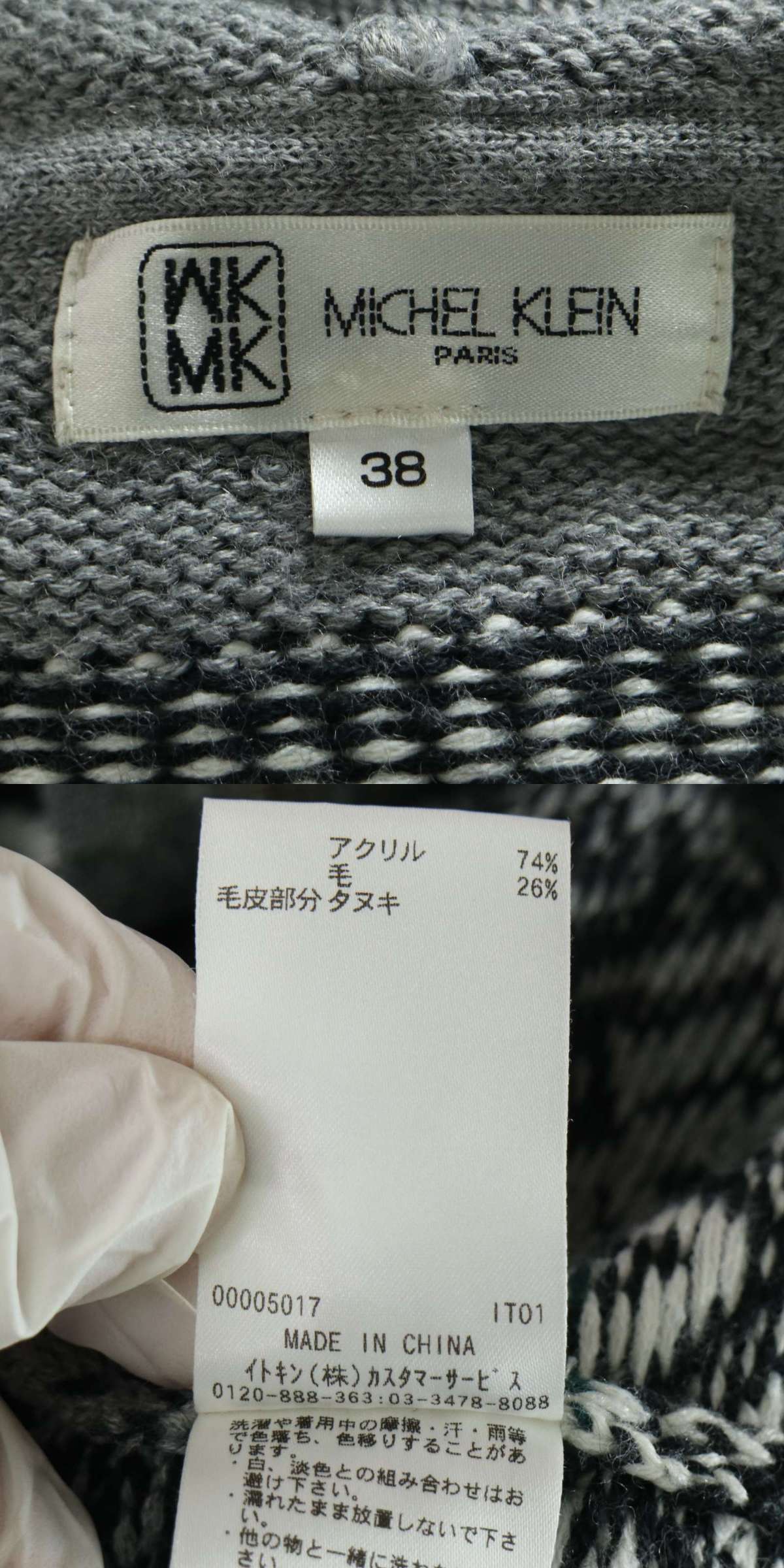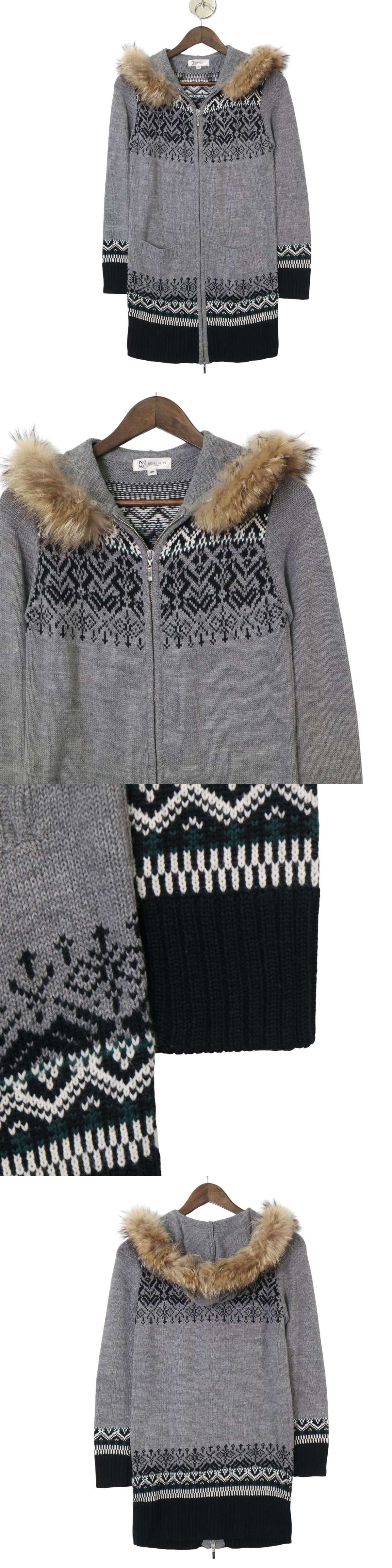 MICHEL KLEIN ミッシェルクラン リアルファー★ ウール混 ニット ジップ フーディー カーディガン Sz.38 レディース グレー 收藏