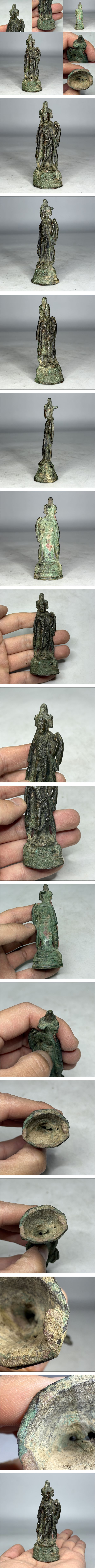 時代物 旧家整理品 唐朝期 古銅観音立像 古物保証(朝鮮高麗李朝 金銅 仏像 仏教美術 唐物 中国美術 骨董品) 收藏