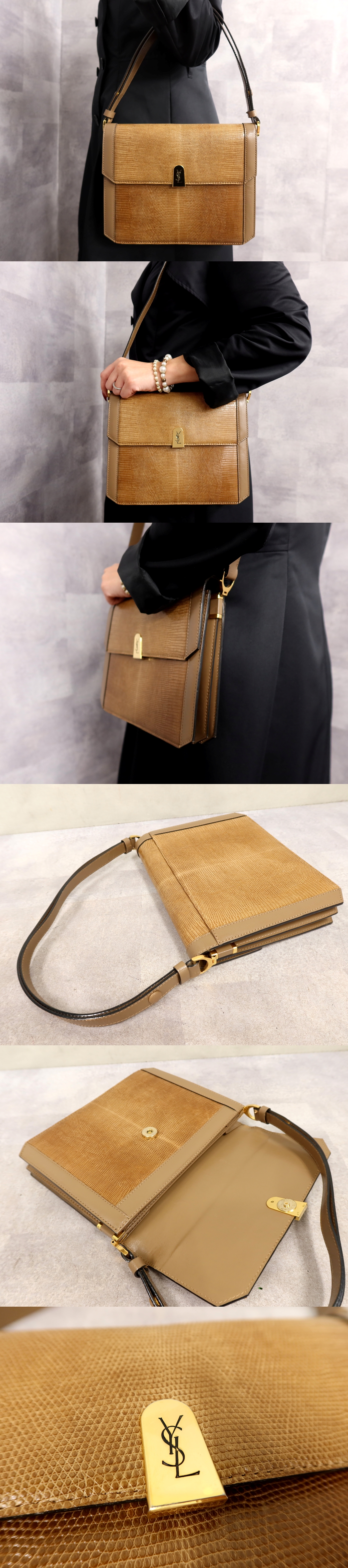 ●超美品●YSL Yves Saint-Laurent イヴ・サンローラン●リザード 本 トカゲ 革●ショルダー バッグ●ブラウン●ゴールド金具●Js63086 收藏