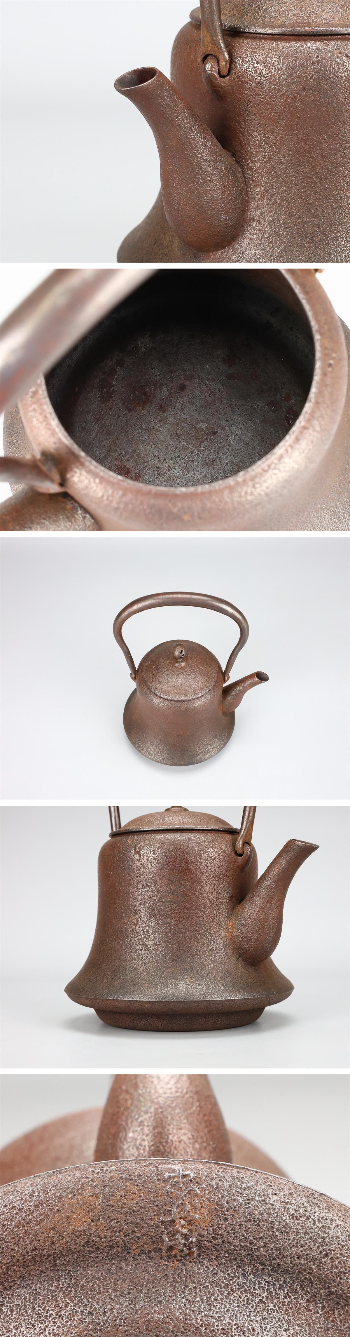 【吉】TA834 釜師 【鈴木忠兵衛】造 砂鉄含有 中型 鉄瓶/水漏れ無し美品Y! 收藏
