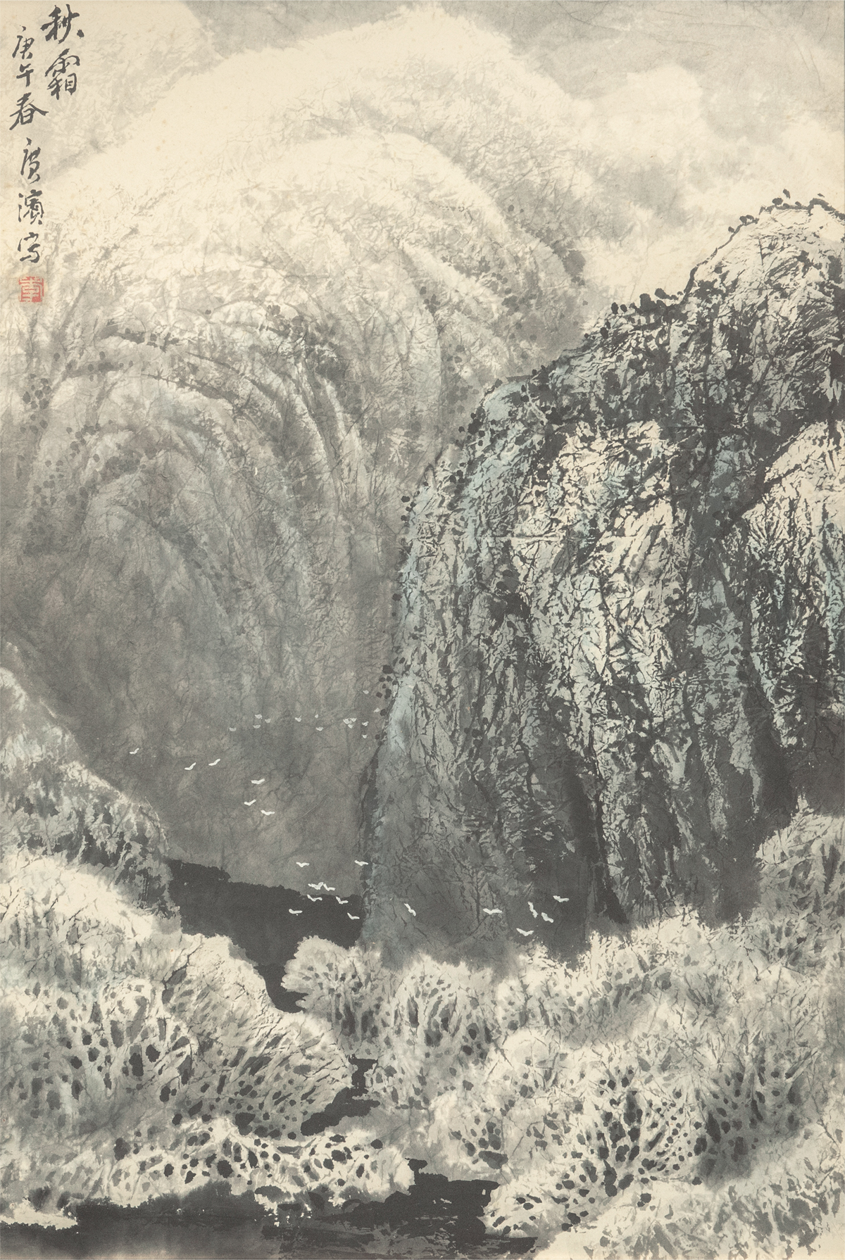 李广濱 1990年作 秋霜 額装 真作 李广滨 中国 近現代絵画 收藏