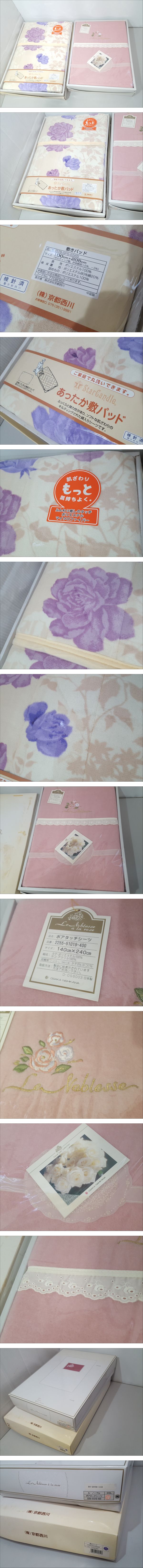 ※佐川急便の場合、離島など別途中継手数料がかかる地域が御座います。 その場合はお振込みを追加でお願いする場合が御座います事、 事前にご了承の程、宜しくお願い致します。 [商品名] 1円スタート 【未使用品】京都西川 大阪西川 敷パッド ボアタッチシーツ おまとめ2点セット [状態] 新品・未使用品のおまとめセットです。 おまとめセットにつき詳細な状態確認は行っておりませんので、 商品の状態、詳細は画像よりご判断お願い致します。 箱に汚れがあります。 ※全体を広げての確認は致しておりません。