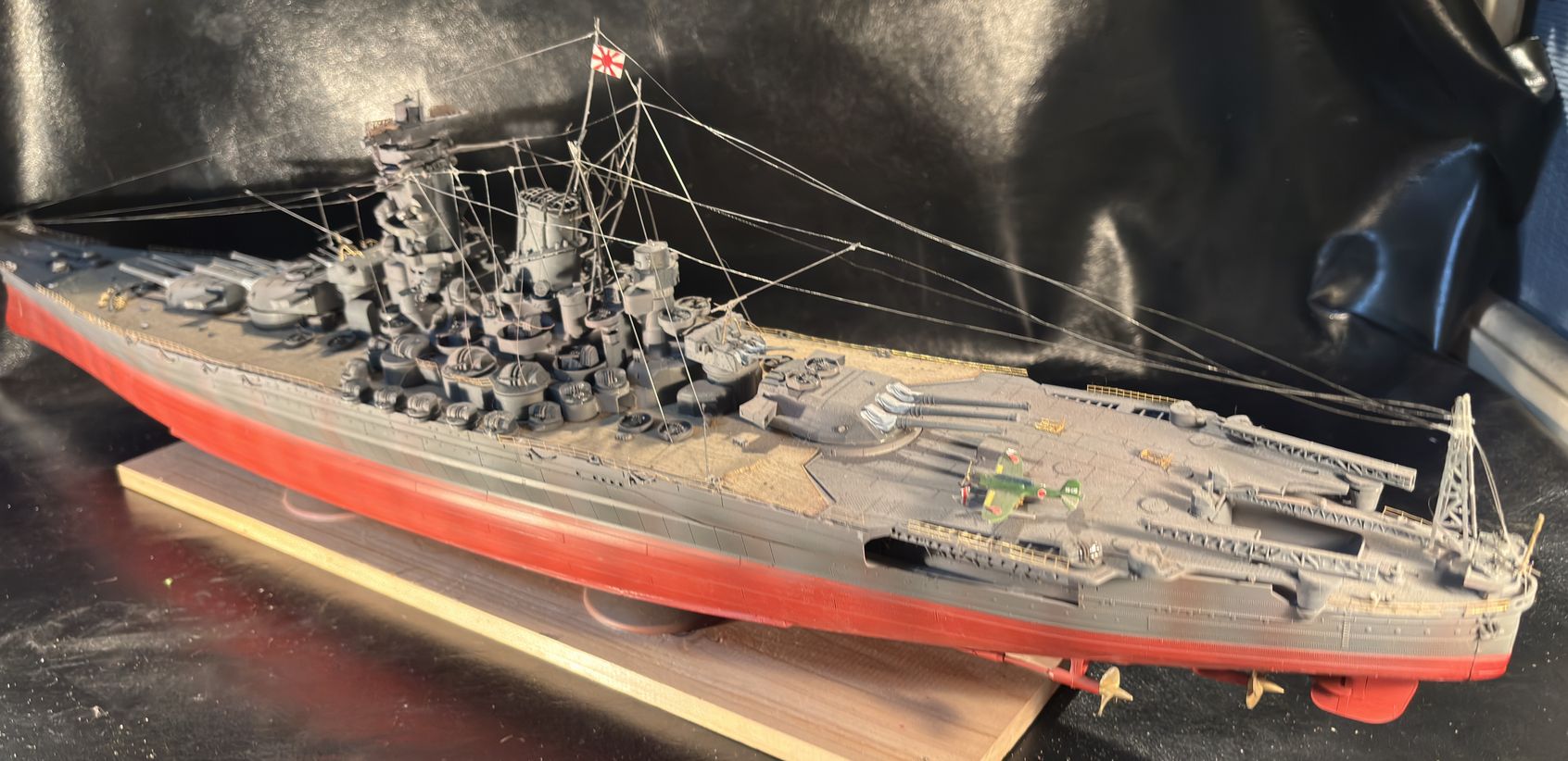 中華製新規金型で投入された新参キット…ということで手を出してみたらプラ部品はモールドもたるくクオリティがリンドバークのキットを想像させるクオリティ、売りのエッチングキットしか価値ないという印象のキットで、初期のタミヤキットが1/350キットの大和の傑作キットだったと再確認するに終わるキットの完成品です。