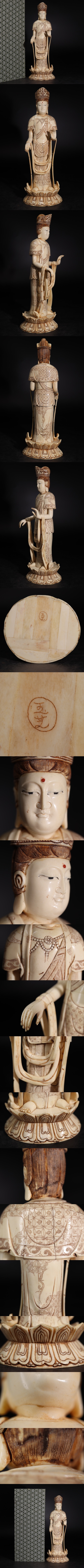 | 玉芝 底款 骨 観音菩薩像 箱付 / 仏教美術 仏像 東洋彫刻 煎茶飾 置物 検索: 中国美術 .G3339 |