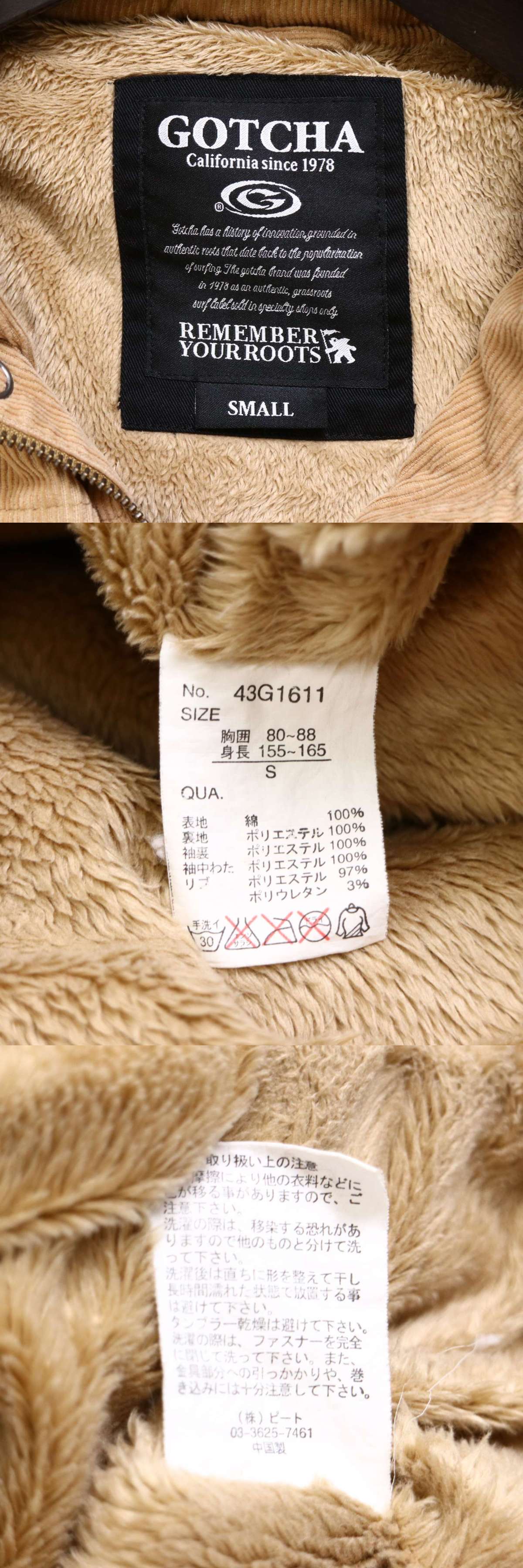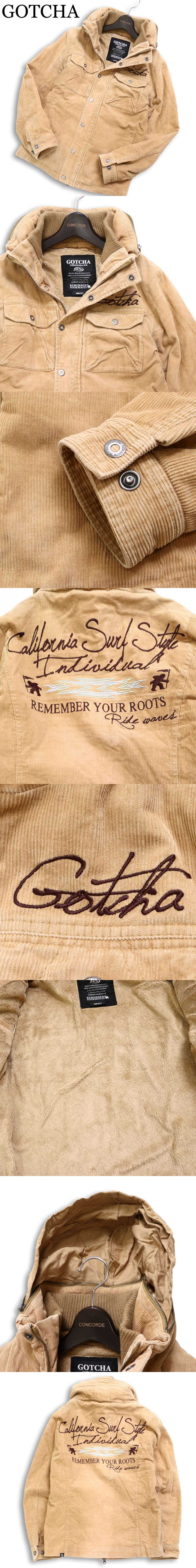 GOTCHA ガッチャ 秋冬 裏ボア★ ロゴ刺繍 フード収納 袖中綿 コーデュロイ ジャケット Sz.S メンズ サーフ 收藏
