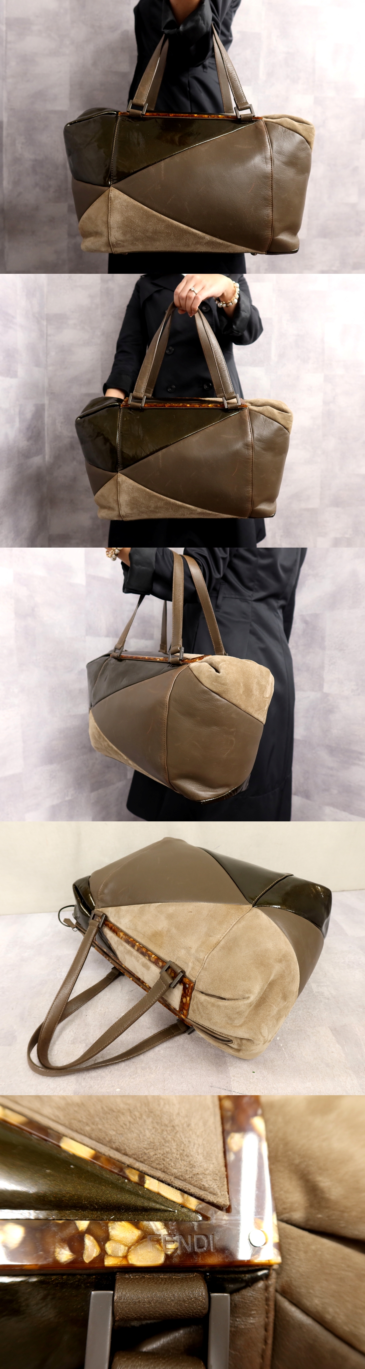 ●超美品●FENDI フェンディ●エナメル パテント スエード カーフ レザー 本革●ボストン ハンド バッグ●マルチカラー●A4 収納●Js63681 收藏