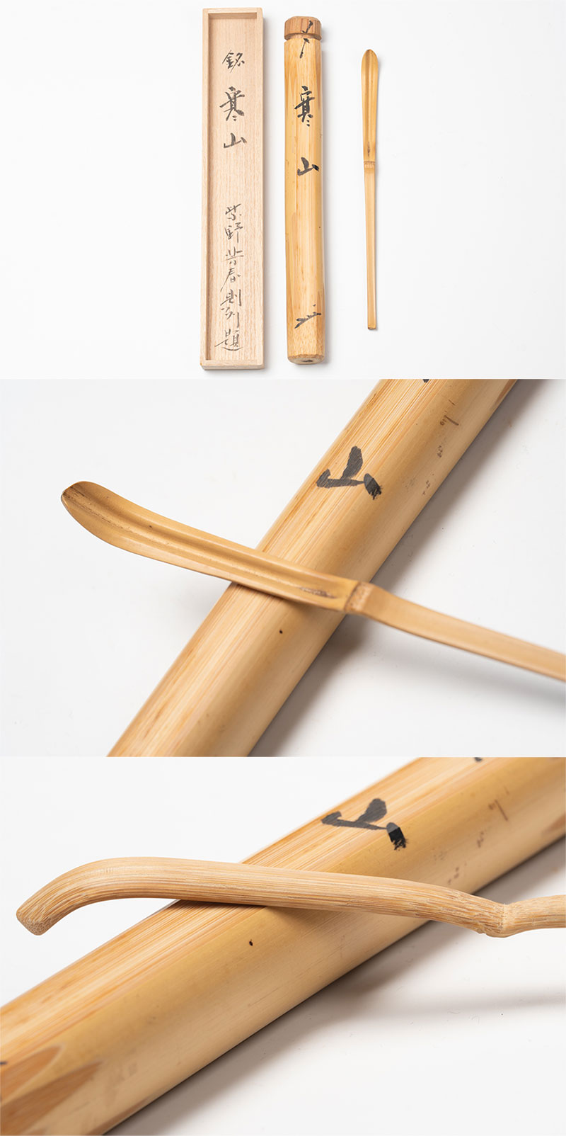 芳春院 秋吉則州 銘「寒山」茶杓「茶道具・茶杓」 共箱 【真作保証】送料無料 收藏