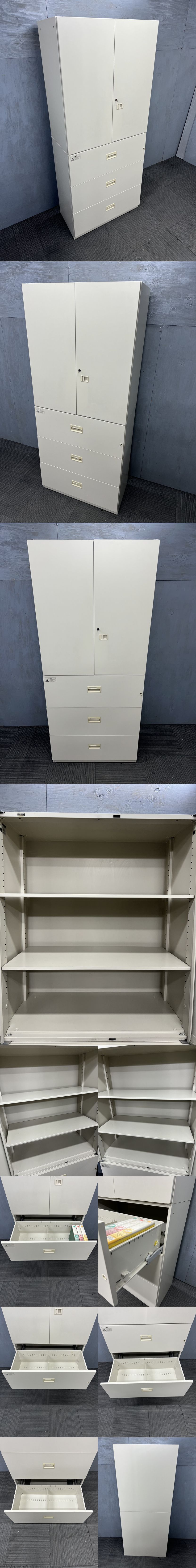 ◆管1126◆自社便対応地域あり◆ライオン製◆観音両開き 3段A4ラテラル上下書庫 鍵付き◆幅900mm 高2100mm◆ニューグレー 收藏