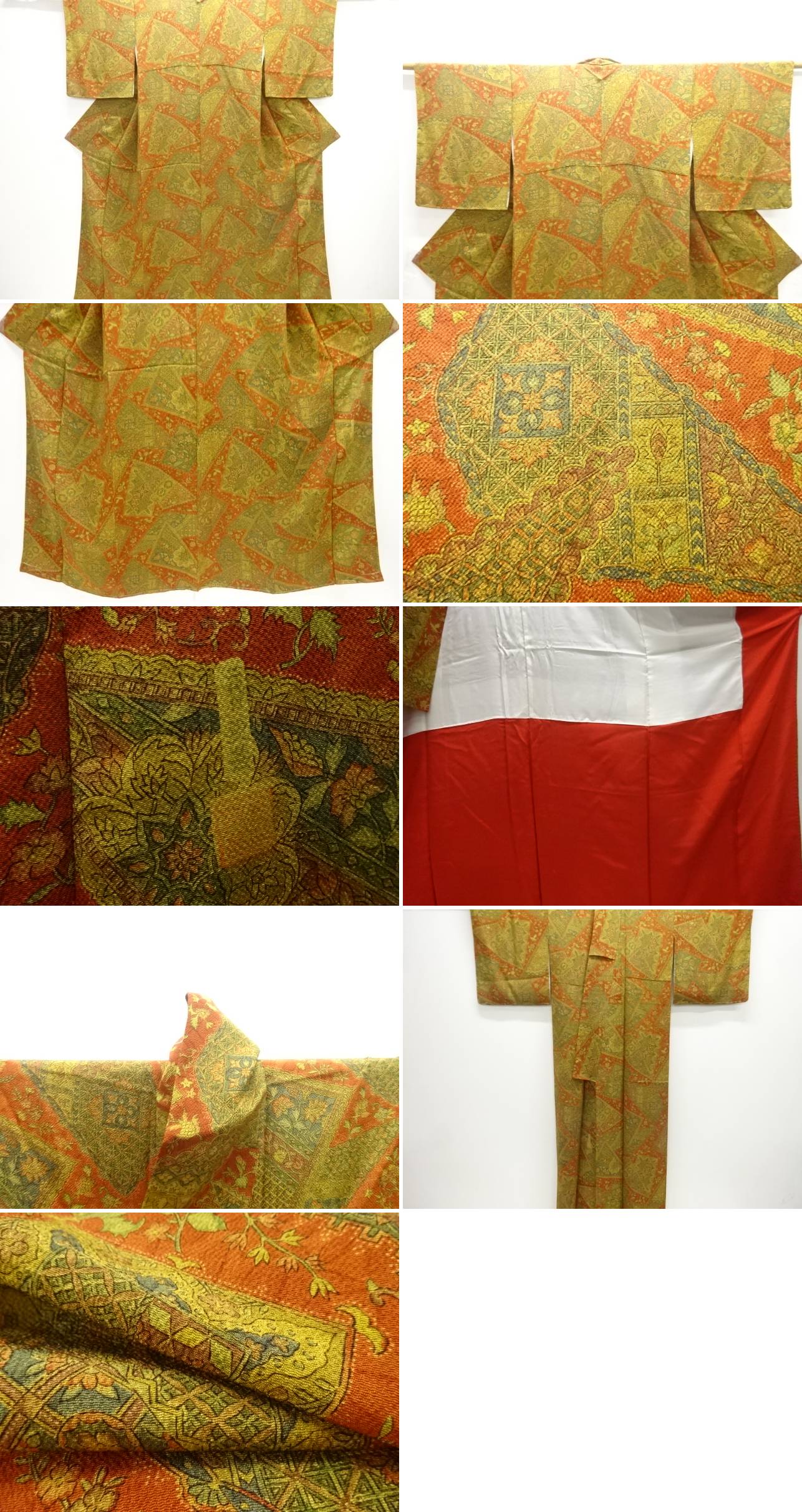| お着物の状態をできる限りお伝えできるよう努力しておりますが、当店で出品の商品は全てアンティークになります。 一品一品丁寧に検品の上、出品させて頂いておりますが、稀に小さな見落としや、アンティーク特有の経年に伴う汚れや傷のある場合もございますので、アンティーク・中古品にご理解ある方のみのご入札をお願い致します。 寸法に関しましては、一品一品手作業での採寸であり、性質上生地の伸縮性もございますので、若干の誤差はご了承ください。 ごく稀にですが、樟脳やアンティーク特有の匂いがある場合がございます。 匂いに関しては、商品コメントには記載しておりませんので、ご理解の上ご入札下さい。 はぎれ商品につきましては、解き商品が多くなっております。 生地端に縫い糸の残りが多く残った状態での出品となります。 ご理解の上でのご入札と、ご自宅でのお手入れをお願い申し上げます。 | |