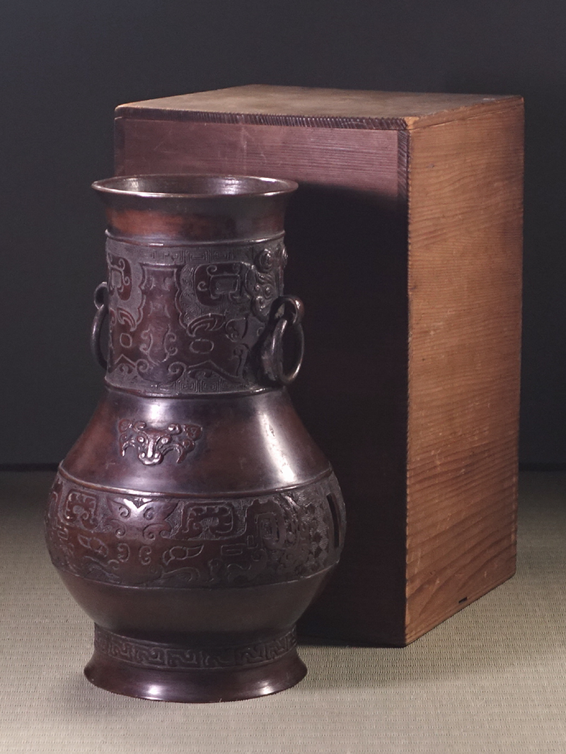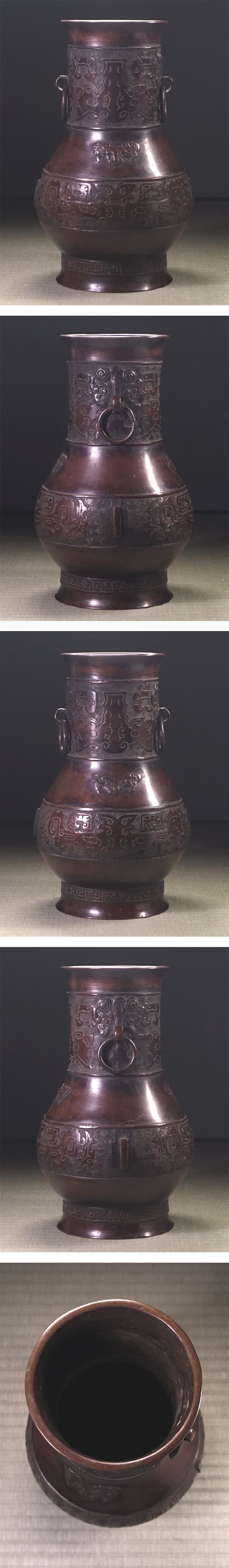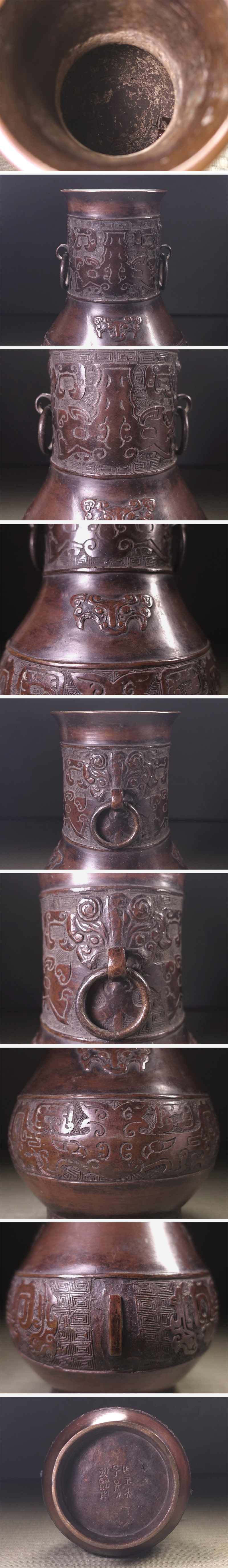 ∇花∇明~清時代頃 古銅饕餮紋遊環瓶 作王光子孫永宝用底款 荘厳な中国美術 收藏