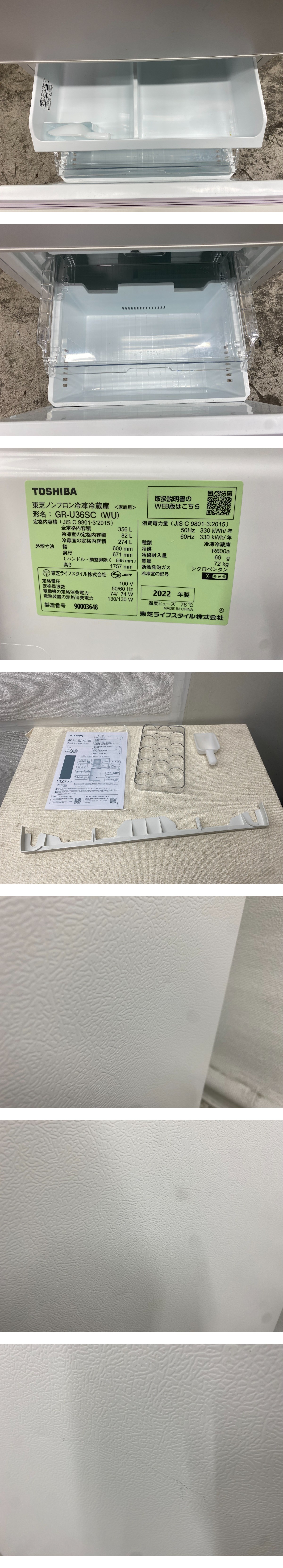 大阪発 東芝 ノンフロン冷凍冷蔵庫 GR-U36SC 72kg 356L 2022年製 IMa H | |||||||||||||||||||||||||||||||||||||||||||||||