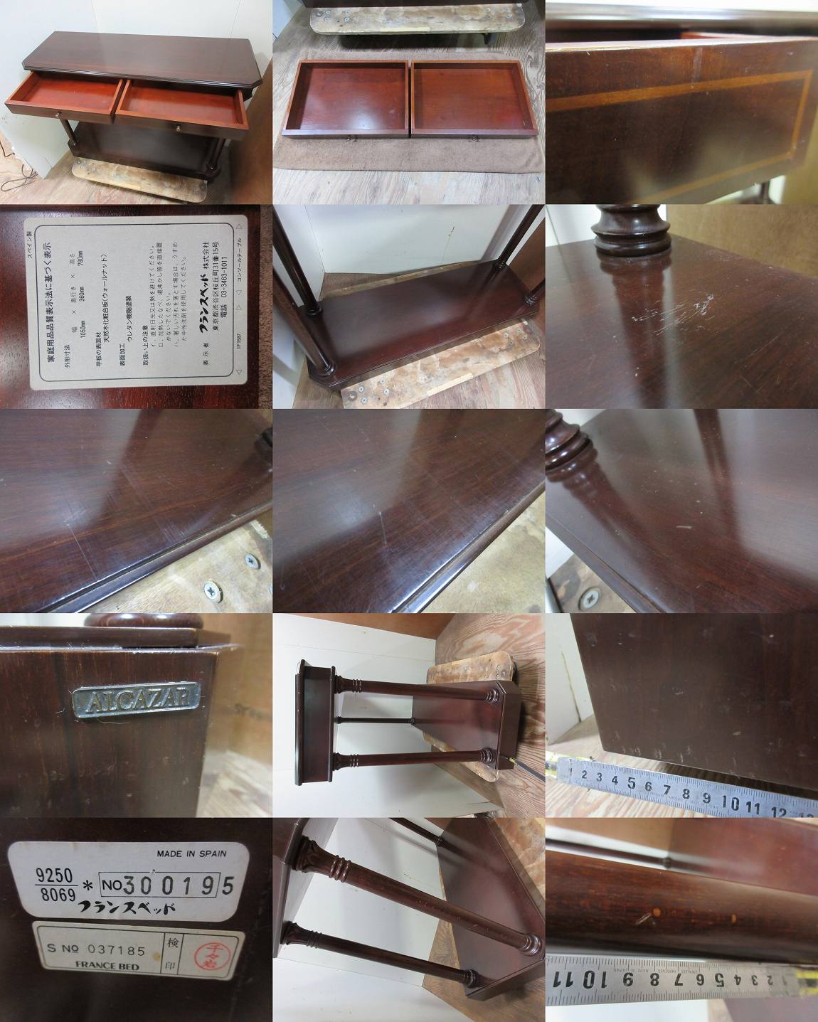 D1521★フランスベッド株式会社■ALCAZAR■アルカザール■コンソールテーブル■引出し付■MADE IN SPAIN■中古品■マホガニー 收藏