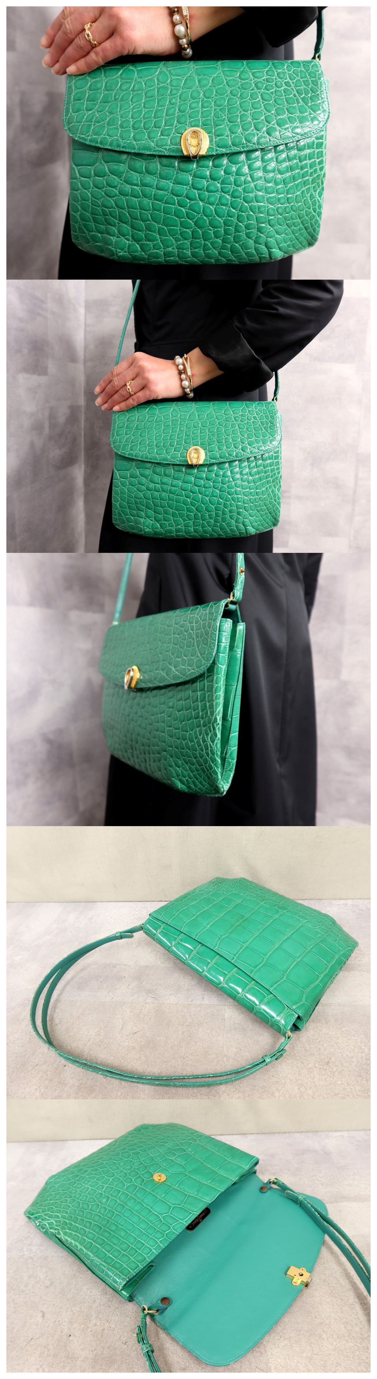●超美品●MODELL ROYAL モデルロイヤル●シャイニング クロコダイル 本 ワニ 革●ショルダー バッグ●エメラルドグリーン●G金具●Js64223 收藏