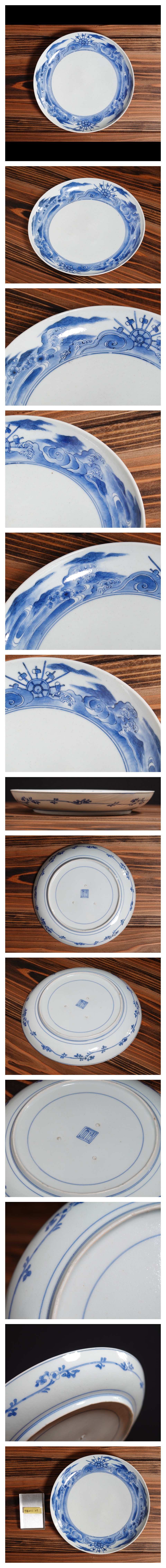 【聖陽堂】江戸時代 前期 17世紀末~18世紀初 古伊万里 藍柿右衛門 『 染付 水車 流水 桜文 中皿 』 七寸皿 【藍九谷 茶懐石】 r8 0111 04 收藏