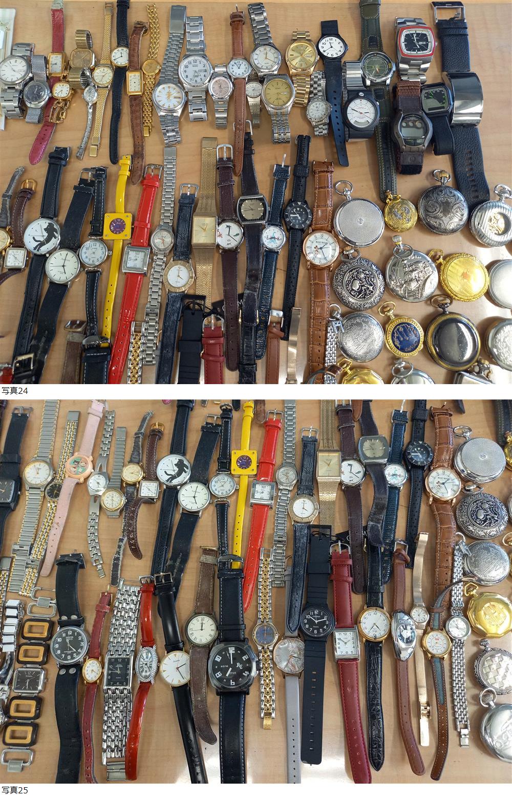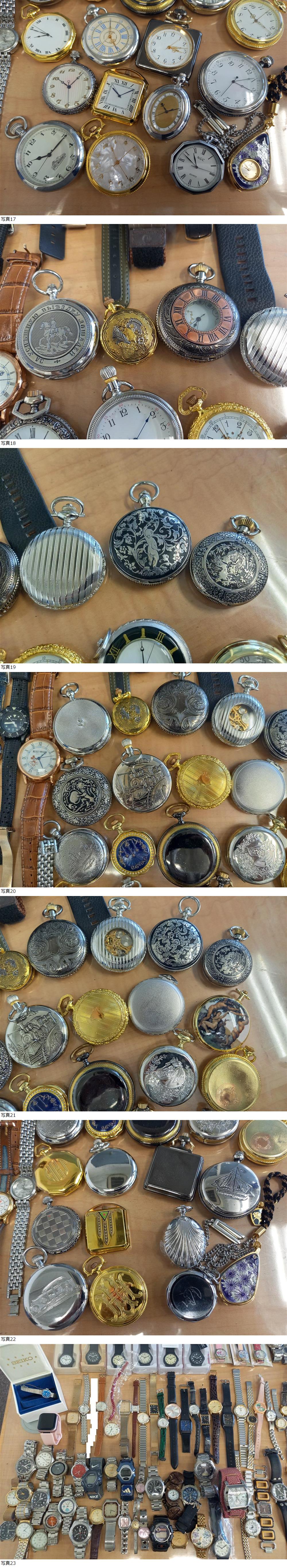| 商品説明 | 【商品詳細】 合計149点 ※なるべく写真順に記載させて頂いておりますが前後する場合がございます。 ※誤記載などある場合がございます。ご容赦ください。 ●腕時計など 計122点 ・COSMIC LUCERO RSP-001 ケース入 ベルト破損 ・COSMIC LUCERO RSP-001 ケース入 ・COSMIC LUCERO RSP-001 ケース入 ・COSMIC LUCERO RSP-001 ケース入 ・COSMIC LUCERO RSP-001 ケース入 ・COSMIC LUCERO RSP-001 ケース入 ・ディズニー キューティーウォッチ マリー010 ケース付 ・ディズニー スウィッティウォッチ ミッキー&ミニー001 ケース付 ・ディズニー キューティーウォッチ ミニー011 ケース付 ・SEIKO 7N43-7B80 303428 ・SEIKO 2202-0080 0N5697 自動巻・動作品 ・SEIKO 1N21-5250 500213 ベルト破損 ・SEIKO 2320-6630 141709 ・SEIKO 2622-5020 894782 ・SEIKO 9N02466 1140-7040 自動巻・動作品 ・SEIKO 7N01-6880 954120 ・SEIKO 2320-0340 134943 ・SEIKO 4N21-5250 540141 ・SEIKO 1F21-0A30 990005 ・オリエント EM4J-CO CA ・CITIZEN E101-S024650 640134 ソーラー・動作品 記念刻印有 ・CITIZEN Wicca E001-S017505 540327 ソーラー・動作品 ・CITIZEN E031-K006074 151050157 ソーラー・動作品 ・CITIZEN 4-677803 7041266 ・CITIZEN EXCEED A735-H10457 410178 ソーラー・動作品(現状秒針の動きが不規則) リューズ不足 ・RICOH 580393 ・CITIZEN JUNCTION ・ジバンシー CRUISE RSII.014.XV ・CASIO 1330 MQ-24 ベルト破損 ・CASIO 377 AW-10 ペン記載有 ・CASIO 4707 AQF-100 ・CASIO 1966 FT-111H ・DIESEL DZ-4065 340507 ・CASIO 308 AQ-GW ・DIESEL DZ-7092 250912 ・SEIKO 10-0910 8D0651 ケース有 ・スマートブルトゥースウォッチ ・BUREN 3UREN BU-9001M'S(時計内部ゴミ有) ・IZAX Valentino IVL-9100-2 石取れ有 ・POLP GERMANY ・CBC 懐中時計 ・CITIZEN EXCEED 2730-273699 50800883 ・スタージュエリー 0?0013 裏ブタ削れ?有 ・URBAN ALBA V301-6250 955479 記念刻印有 ・PIERRE L'HUILLIER GENEVE 6746 11546 裏ブタ削れ有 ・Shinnyo 記念刻印有 ・ThレエFour Time ・Q&Q ファルコン CAL.2035 ベルト破損 ・Shinnyo 記念刻印有 ・PIERRE L'HUILLIER GENEVE 6745 10306 ・SEIKO SPIRIT 5E32-6A30 530264 ・Q&Q ファルコン CAL.2035 ・CRATER ・SCRIPT AXIS 20/520 ・ALBA V811-0550 952239 TAMA&FRIENDS ・AMONA ・TOYOTA ベルト破損 ・ALBA V811-0230 369186 ベルト破損 ・ALBA sefaire Y151-5B80 584006 ・TSUMORI ・Amrini NOB-2435 ・J-AXIS HL195 ・Deep WAL4206MF ・diva ・LEXI'S ・maruman EPRISE MW539 ・SUNLORD PLAYTH M3611 ・Sormisa マルゼングループ エリックカール ・RADO 711.2015.4 12810090 ・ELLE 7630-A03688 ・FORTUNE 51621 42323 ・ディズニー ミッキーマウス NO.1280 ・GUESS ・CITIZEN FORMA 5500-F51405 816071 ・ディズニー Pooh 342909220 ・ALFREDO VERSACE V769S ・NIKE TESTED ・NICOLA VALENTINO NVG-606 ・アディダス(デジタル) ・ALBA ingenu V111-0AM0 0N0082 ・TAKEO KIKUCHI TK-2066 ・木製? 詳細不明 ・J-AXIS ベルト破損 ・Q&Q ラジオコントロール SOLARMATE UP02 ・muta MU-8001 ・CITIZEN Forneris 3G30-407784 70801477 ・詳細不明 ・Polo Team Royal Queen's QE-6040 ・ALBA Y143-6021 690495 時計部分のみ。時計内部キズ汚れ有 ・J-AXIS SCRIPT ・pierre mode 時計部分のみ。 ・Sunstone ・Marcelli ・MUSK MM-2075 ・Lexi G-55 ベルト破損、時計内部劣化 ・ALBA Y950-5020 360945 ・SINOBI 2864L ・BULOVA La ・courreges Y151-0G20 100137 ・CASIO Gショック 2594 GL-170 ・RADO Custom 713.5055.2 k168872 ・OLIVIA BURTON LONDON OB061 OBW0505 ・LUCERO RSP-001 ・CHOOP 7830-A42250 9703 ・Alessandra OLLA FIRENZE AO-9300-1 ・FOSSIL F2 ES-1836 110703 ・maruman DELICES SUPER-EL DE069 ・ALBA V811-5A00 930205 ・EXTRA ORDINARY 66/912-P ・ABISTE ・Jouete ・VEGA JUNCTION 6A31-408446 30700048 ・NCFM NICOLE CLUB FOR MEN ・GEORGE CINQ SAPPHIRE YD5001 ・OLIVER BURTON LONDON OB063 OBW0602 ・LUCERO RSP-001 ・Colleziq ・NC400 7N01-6K30 790281 記念刻印有 ・CHOOP 7630-A42268 9703 ・LAZY SUSAN AL-397284 ・Levi's ・VanguardⅡ ●懐中時計 計27点 ・フタ有 計6点 ・フタなし 計21点 ・おまとめ品につき、個別の詳細な質問などにはお答えできません。 ・また詳細な状態確認なども行っておりませんのであらかじめご了承ください。 ・中古品のため劣化、キズ汚れ、不足、破損、故障などある場合がございます、ご了承ください。 ・気になった点は記載しておりますが、すべてを漏れなく記載している訳ではありません。また見落としなどある場合がございます、ご容赦ください。 ・ある程度まとめてプチプチに包み、箱に入れて発送させて頂きます。 ・万が一コピー品と確認された場合、商品を確認の上全額返金対応いたします。 ≪注意事項≫ ※毎週月曜日は休みを頂いております。日曜日の17時頃から火曜日の午前中まで、連絡・発送等の対応が出来かねますので予めご了承くださいませ※※ ※商品の送料に関しましては本文下部に記載しておりますのでご確認ください。※※ ・写真に写っているものが全てです。キズ、ヨゴレ等、状態については画像にてご自身でご確認いただき、画像にてご判断頂ける方のみご入札ください。 ・写真には写りきらないキズ・汚れ等ある場合がございます。予めご了承下さい。 ・商品の写真と実際の色がモニターの種類、照明の違い等により少し実物と違って見える場合があります。 ・商品をご理解の上、ノークレーム、ノーリターンでお願い致します。 ・商品落札当日、夕方以降のご質問には対応出来かねますのでご了承ください。 ・分