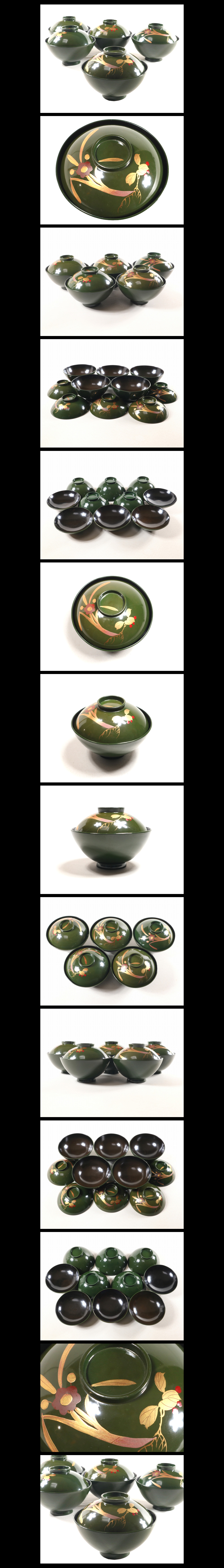 ●c1146●【漆絵蒔絵吸物椀5客/水仙南天 布着塗分青内黒】検お茶会煎茶道具茶懐石●西瓜●