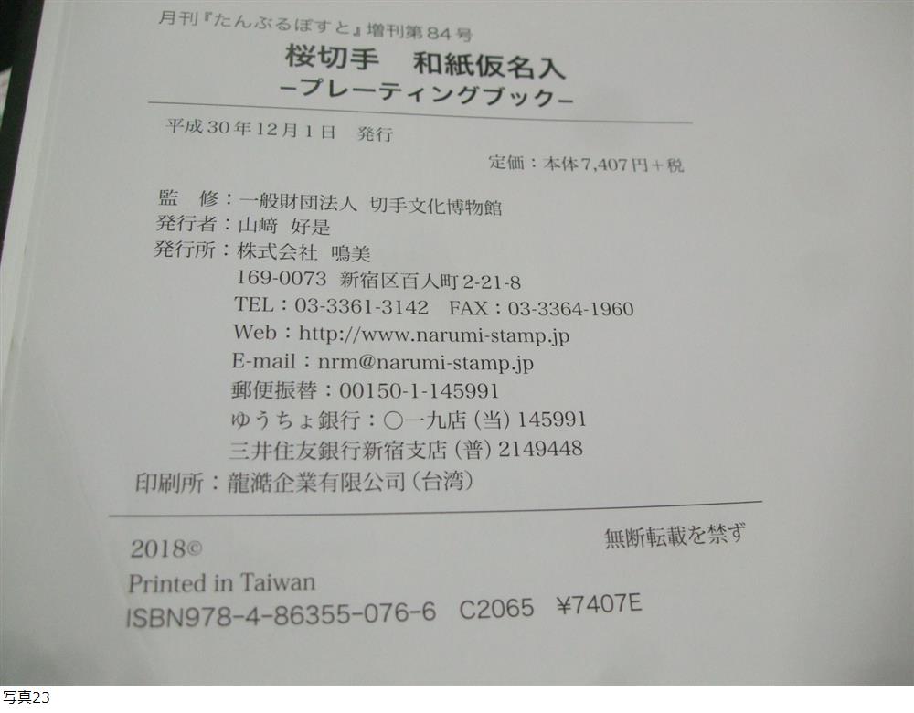 手彫蒐集家必須本!!「桜切手 和紙仮名入 プレーティングブック」1冊WK-000、鳴美。未使用未開封品 收藏