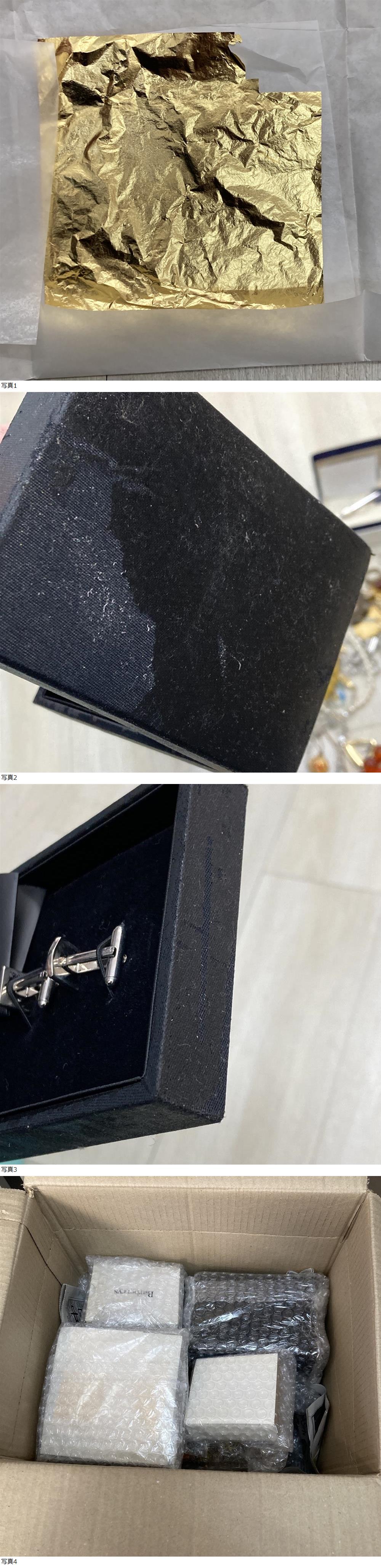 | 商品説明 | 譲り受けた物ですが使用しないので出品いたします。 専門知識が無いので、いただいた質問に答えられない場合があります。 1枚目の画像が全てです。 重さは段ボール、ジップ袋、タイピンケース、カフスケースも込みで 約5888gになります。※画像2枚目 各アイテムの検品、採寸は行なっておりません。 ばら売り、個別の質問対応、採寸依頼はお受けしておりません。 天然か合成かなどは不明です。・壊れているもの、絡まっている物など様々な状態です。 長期保管品ですので、スレや汚れ、経年劣化など状態の良くないものもございます。 全体的にかなりの使用感があります。 1点1点のプチプチでの梱包はしておりません。 商品全体に直接プチプチをまいた簡易梱包にて発送いたします。 以上ご確認の上、必ず写真でご判断頂ける方のみご入札ください。 ≪注意事項≫ ※商品の送料に関しましては本文下部に記載しておりますのでご確認ください。※※ ・写真に写っているものが全てです。キズ、ヨゴレ等、状態については画像にてご自身でご確認いただき、画像にてご判断頂ける方のみご入札ください。 ・写真には写りきらないキズ・汚れ等ある場合がございます。予めご了承下さい。 ・商品の写真と実際の色がモニターの種類、照明の違い等により少し実物と違って見える場合があります。 ・商品をご理解の上、ノークレーム、ノーリターンでお願い致します。 ・商品落札当日、夕方以降のご質問には対応出来かねますのでご了承ください。 ・分かる範囲内で質問等にはできる限りお答えしますので、お気軽にお問い合わせください。 ≪お支払い方法≫ ■ヤフーかんたん決済 ※かんたん決済期日を取引期限といたします。期限を過ぎた場合は取引をキャンセルさせて頂きますので予めご了承ください。 ≪発送詳細≫ ※ゆうパック、商品によっては定型(外)郵便で対応致します。ライター等、郵便局が引き受けできない商品については佐川急便で発送いたします。 ※商品の発送は責任を持って行いますが、万が一の運送時の事故や破損、紛失等(特に定形郵便・定形外郵便)には責任を負いかねますので、発送方法等は十分にご考慮のうえお選びください。 ※実際に梱包した際にサイズ、重量に差異が出る場合が御座いますが、差異分の追加請求または返金の対応はしておりません。 ※その他の発送を希望される場合は事前に、落札前にご連絡下さい。 ※こちらの商品は岐阜県からの発送になります。 ※出来る限り迅速な対応を心がけていますが、個人出品になりますので、ご連絡が遅れる場合があります。 ※ご入金後、3日前後で発送いたしますが、土日祝・盆・年末年始等は発送が遅れる場合があります。 ★上記の内容に理解を得られる方、また画像で判断できる方のみご入札をお願いします。 | |