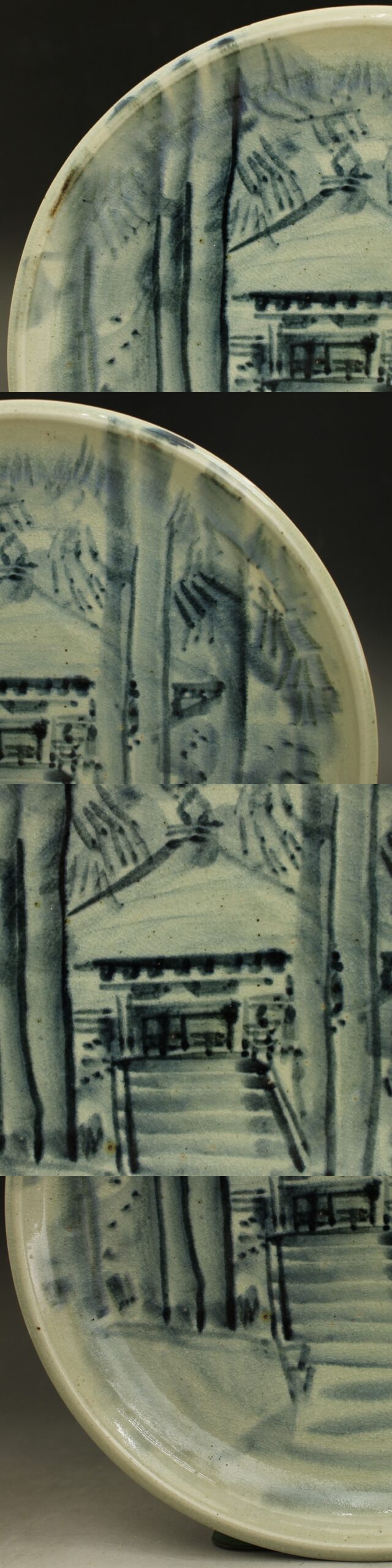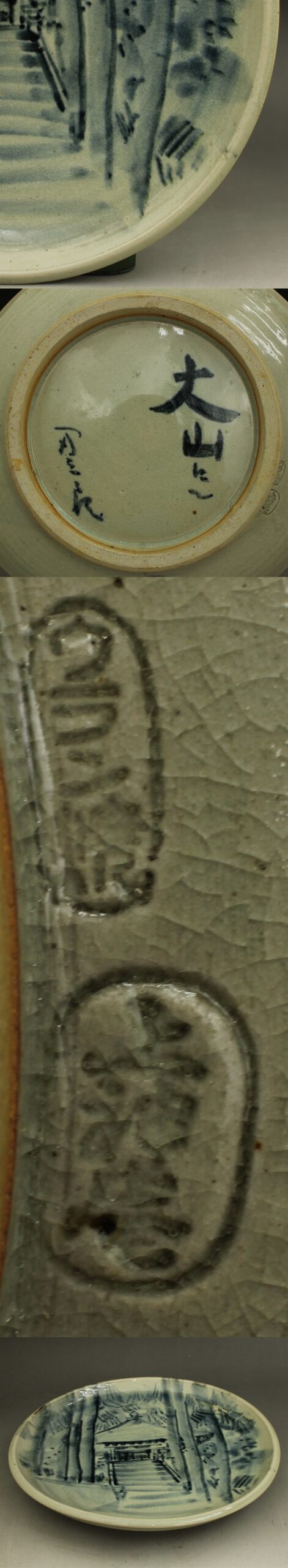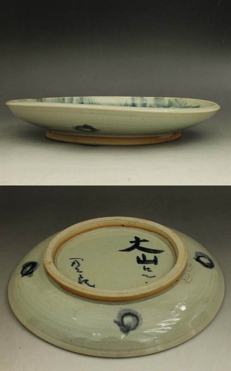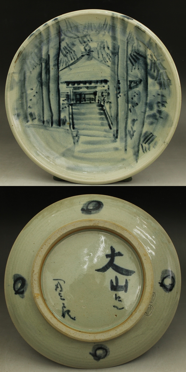 D736 民藝 上神焼 飾り皿 絵皿 大山寺 2代辰三郎 径30㎝ ウラン焼 山陰 伯耆 倉吉 民芸 蔵出し 古玩 珍蔵 收藏