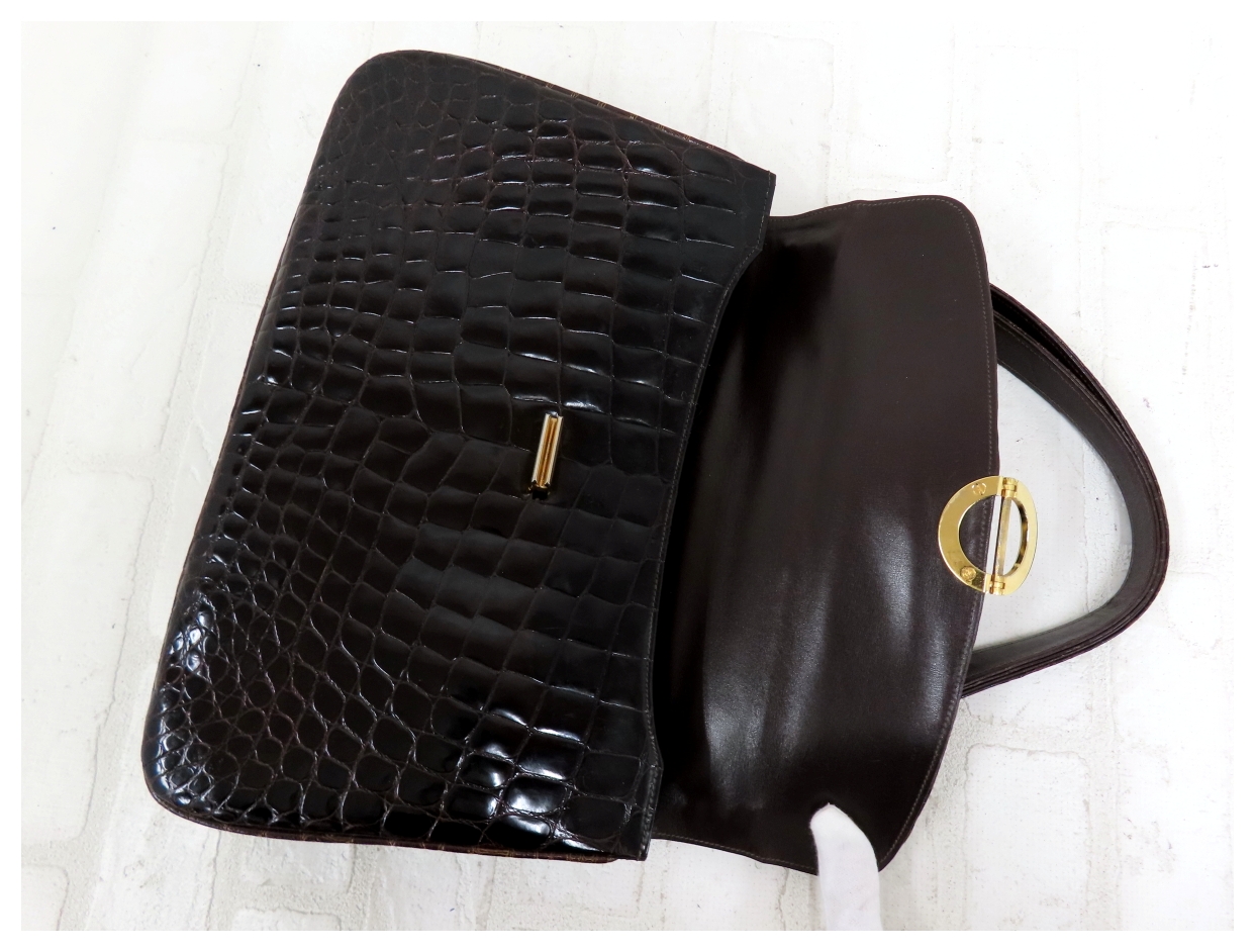 ◆美品◆BALLY バリー◆シャイニング クロコダイル 本 ワニ 革◆ハンド バッグ◆ダークブラウン ゴールド金具◆トップハンドル◆A15684 收藏
