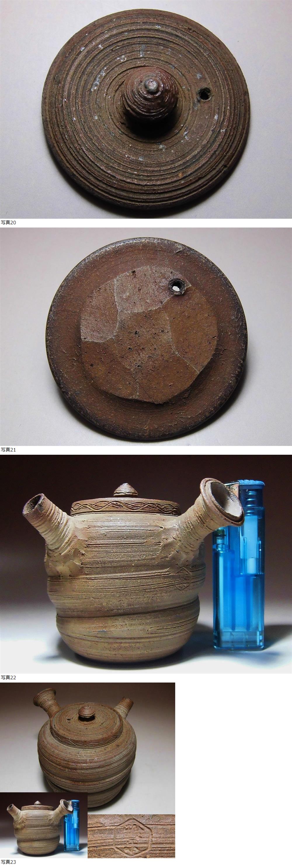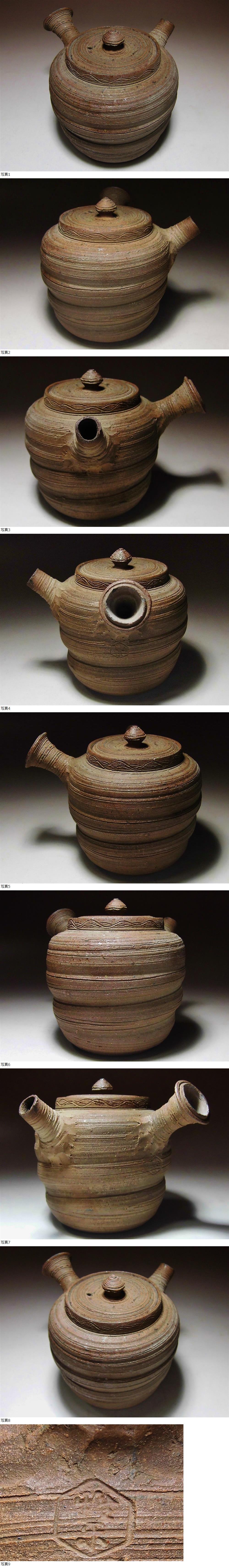 | ★旧家うぶだし!! 煎茶道具//明治期 線状文手捻急須 茶瓶 茶注 手ひねり 急須 在刻印//萬古 古美術 貴重希少品!!★ |