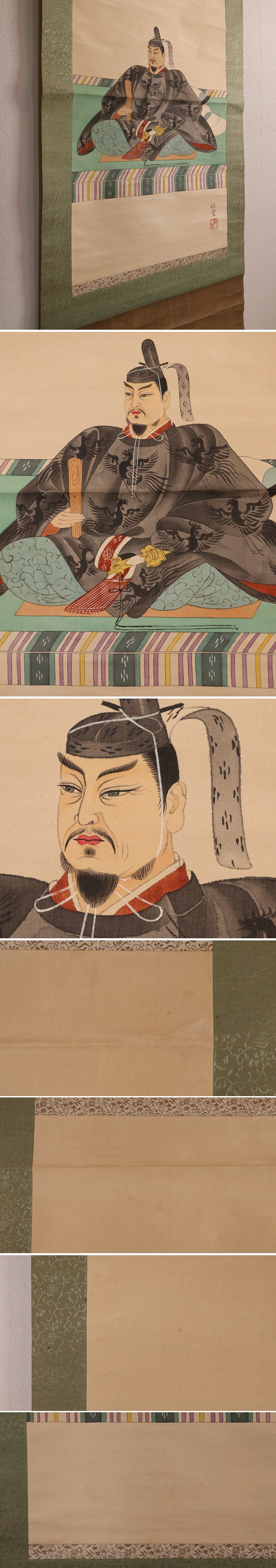 ◇【模写】日本画 菅原道真公御像 天神様 菅公 絹本 掛軸 在銘 松堂 合箱 MB266◇