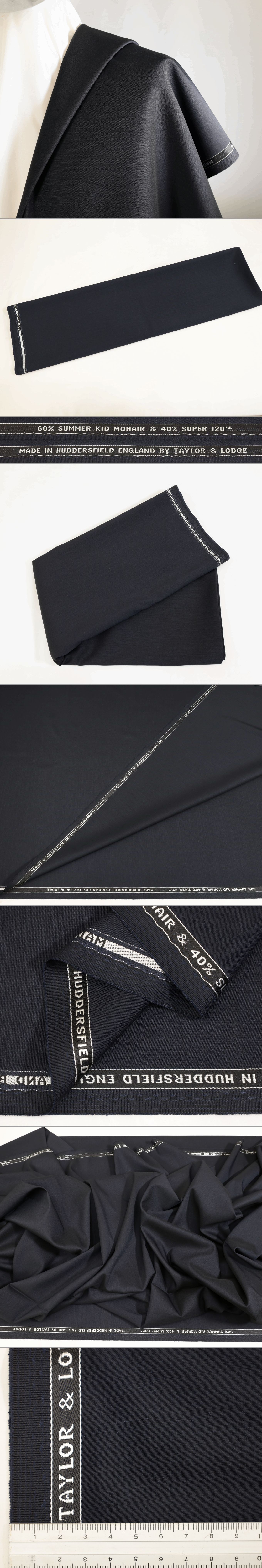 ●英国テーラーロッジ社・夏用超高級60%サマーキッドモヘア&super120・美しい手染め風の定番黒紺無地・心地良いシャリMAX・長さ3.4/3.2m 收藏