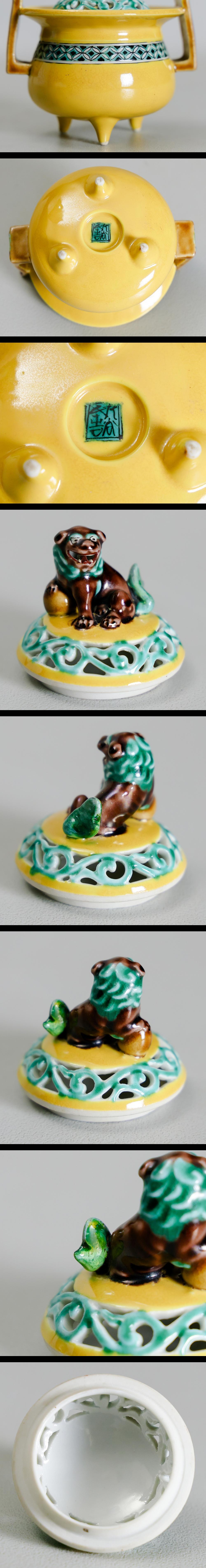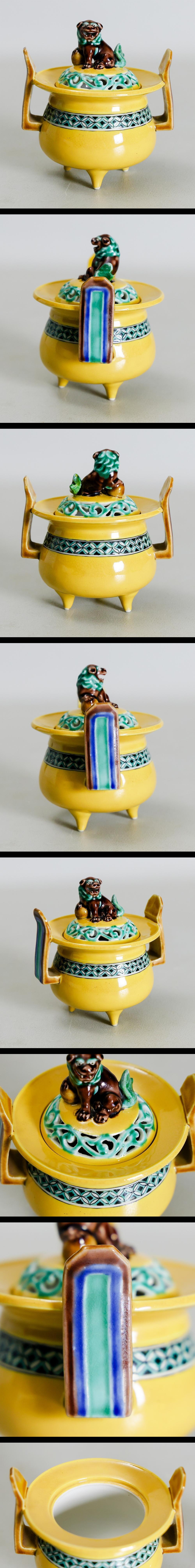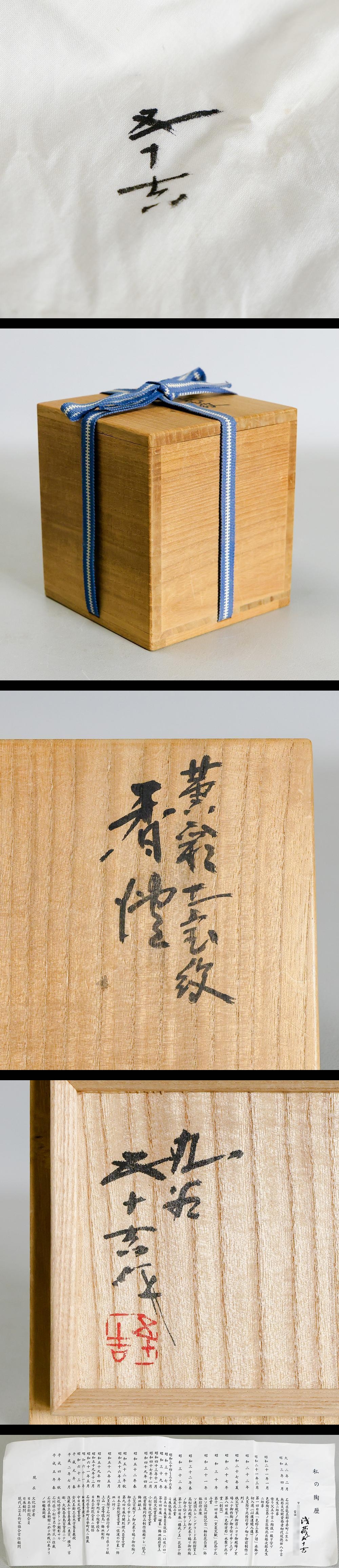 【真作】【WISH】二代浅蔵五十吉「黄彩 七宝紋 香爐」九谷焼 共箱 高さ11.5㎝ 〇文化勲章 文化功労者 日本芸術院会員 陶芸巨匠 #26026028 收藏